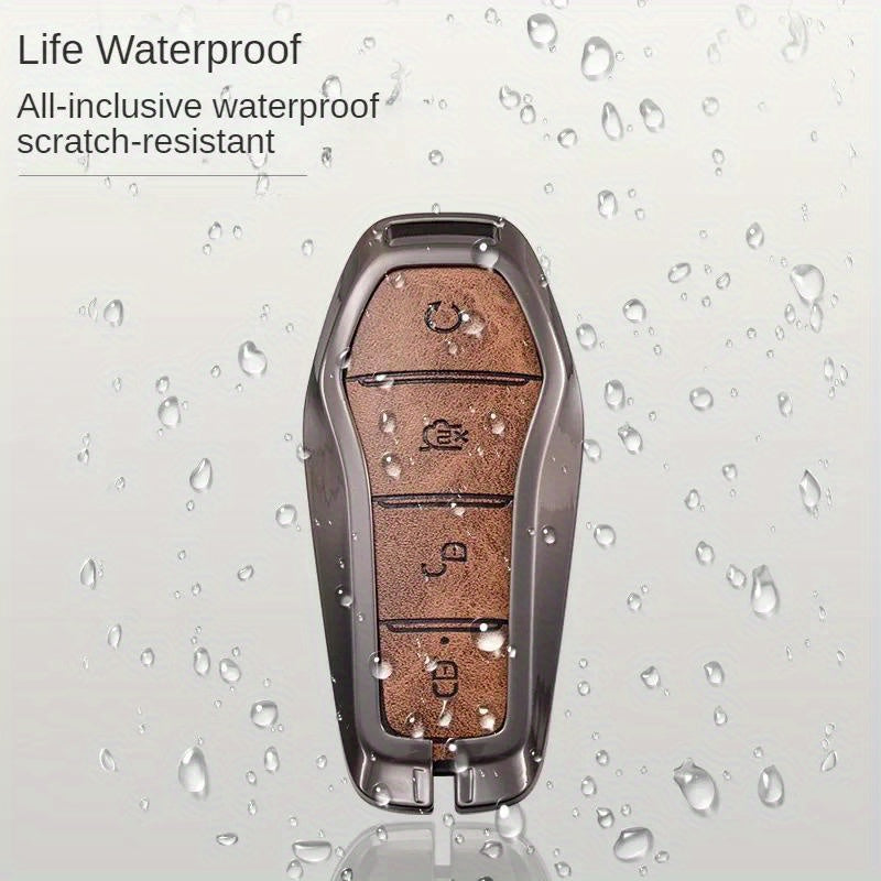 Men's PU Leather Key Cover with Brown Stitching for Remote Fob Protection