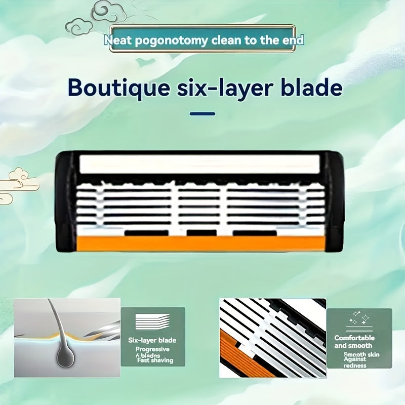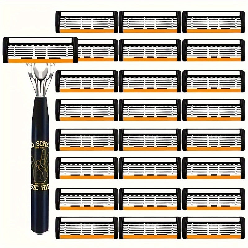 Men's Safety Razor with Curved Blades, Metal Handle for Beard and Mustache Shaving