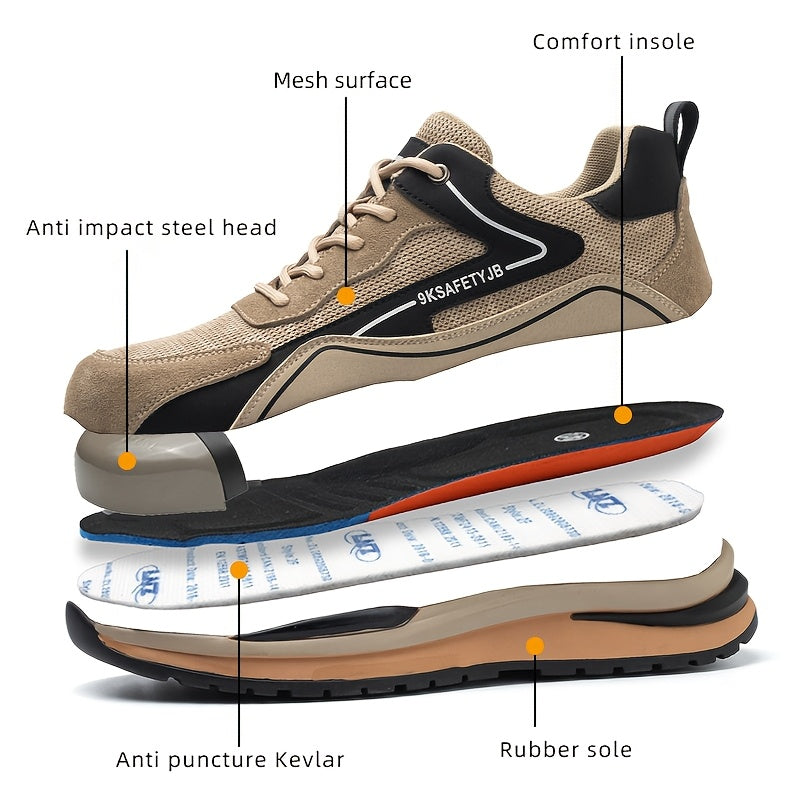 Men's Safety Work Shoes with Metal Toe Cap Puncture Resistant Non-Slip Durable Fabric for Gardening and Farm