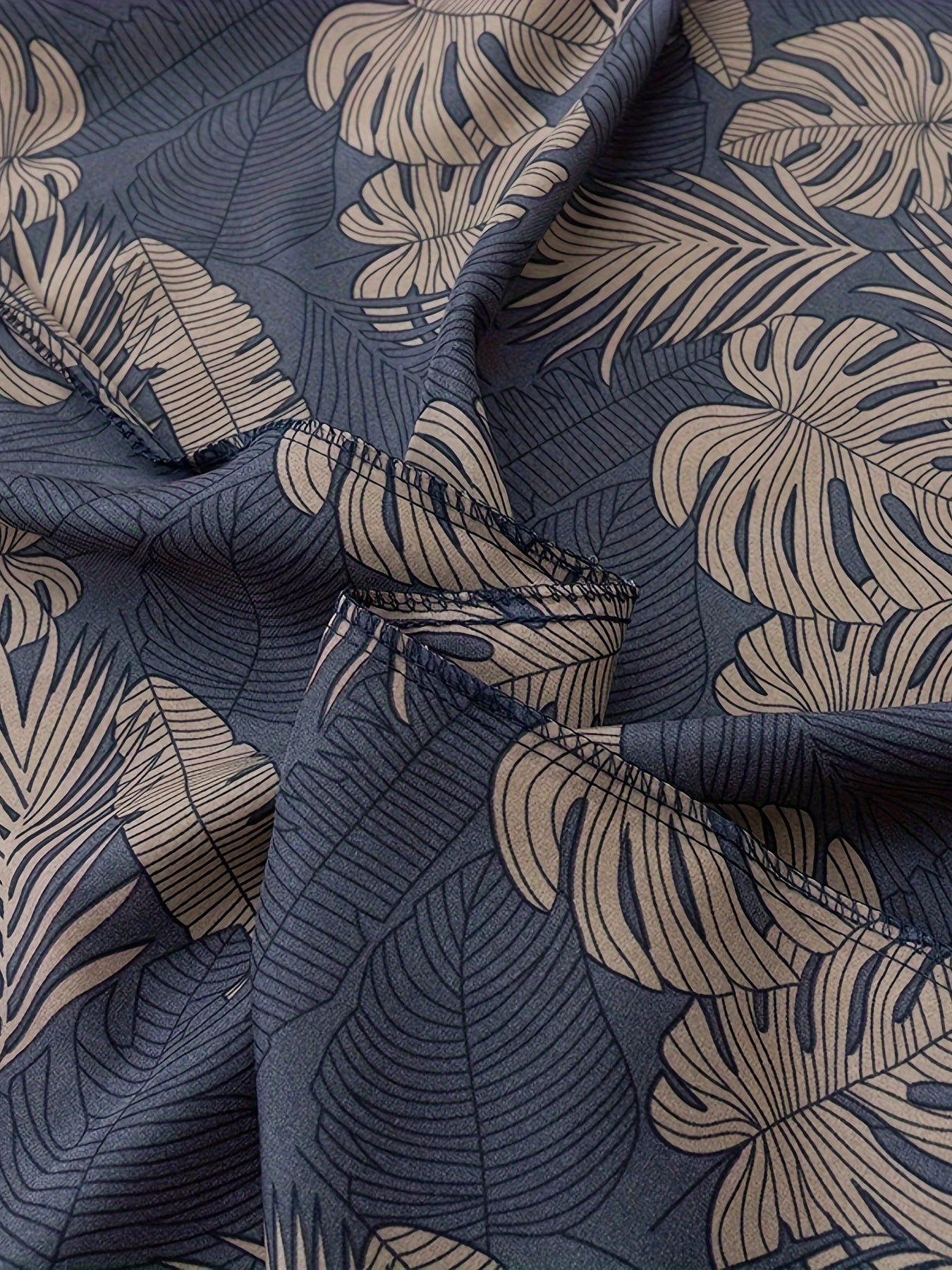 Men's Summer Sleep Robe Loose Fit V-Neck Leaf Print Plus Size Breathable Polyester