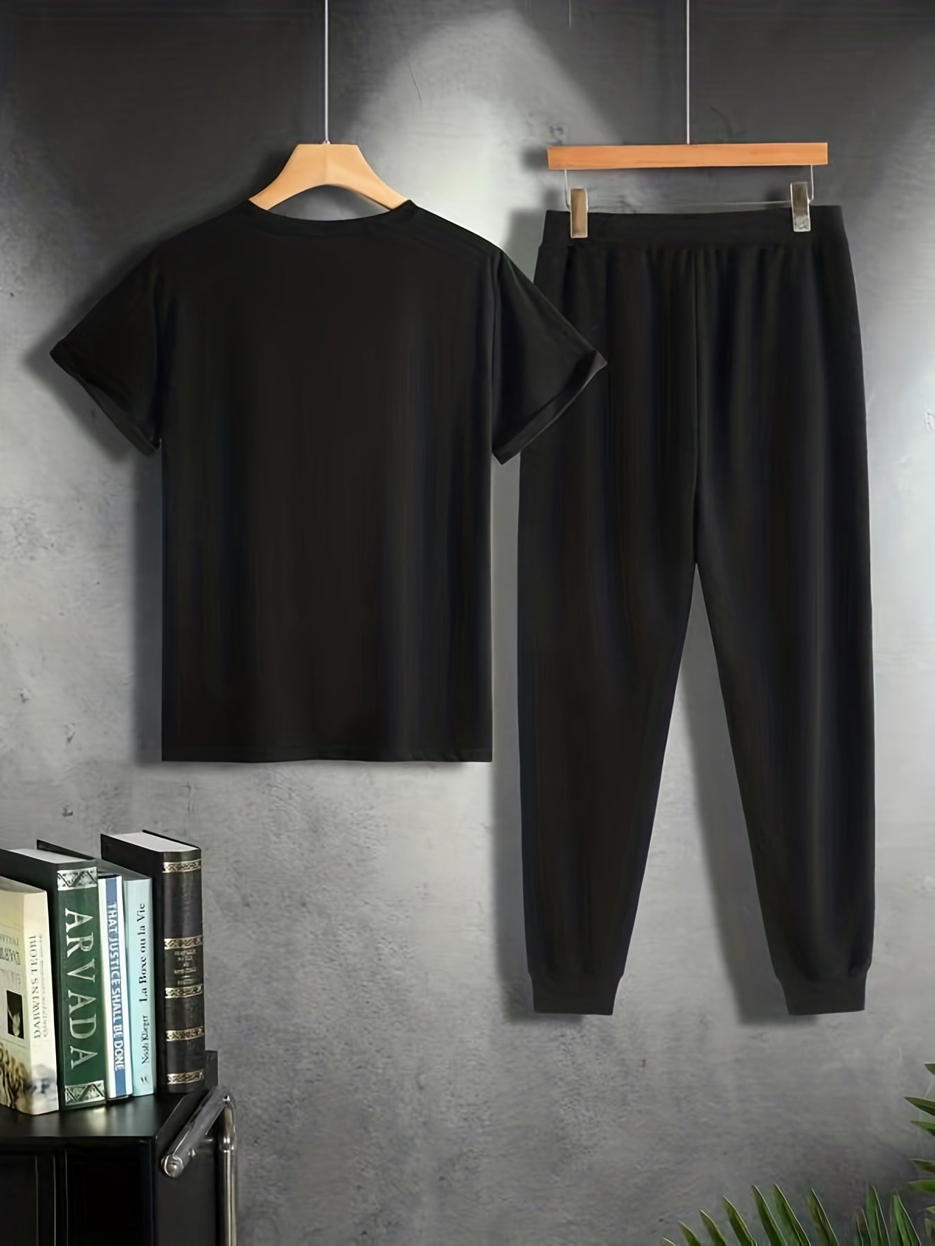 Men's Black Short Sleeve T-Shirt and Pockets Trousers Pajama Set Spring Summer Casual