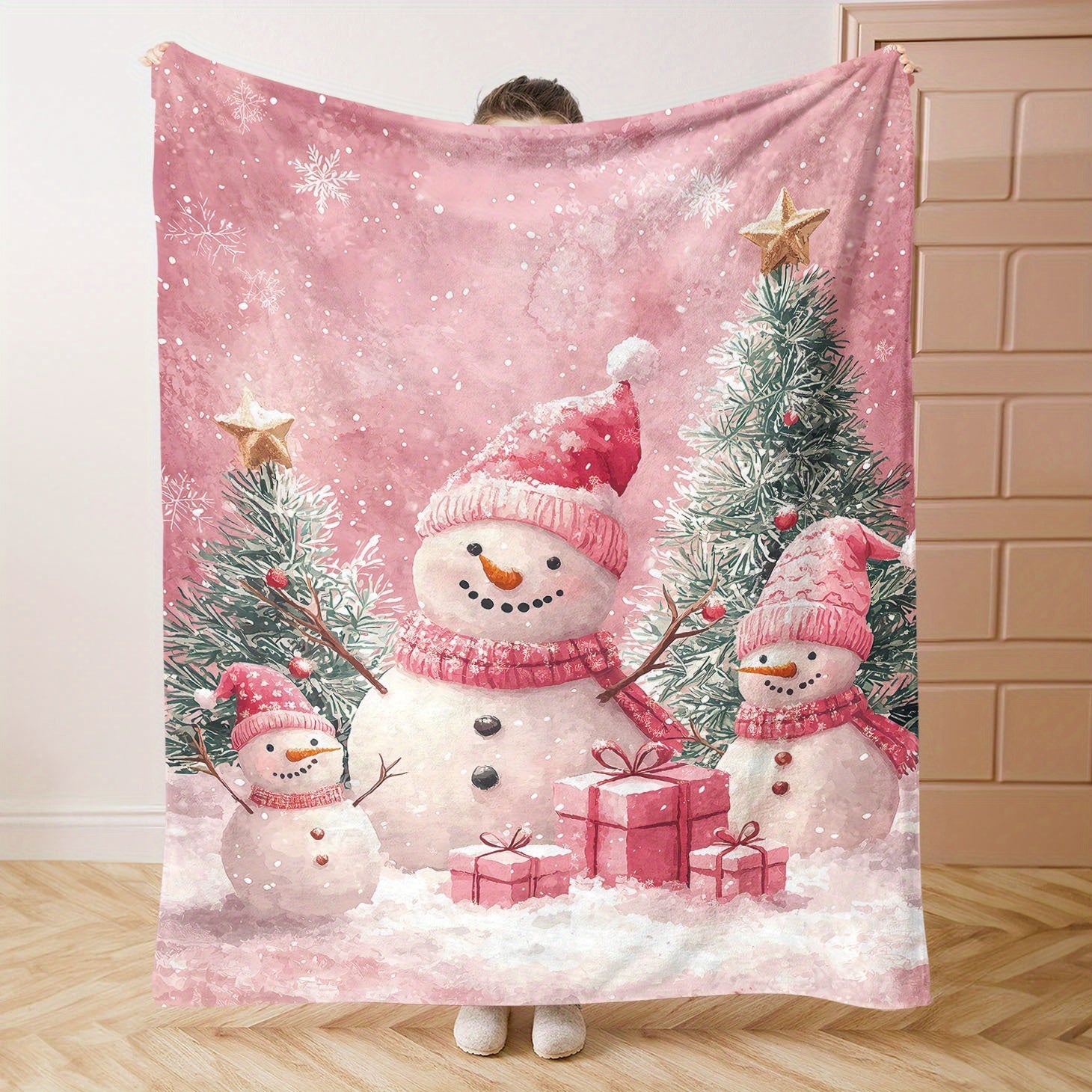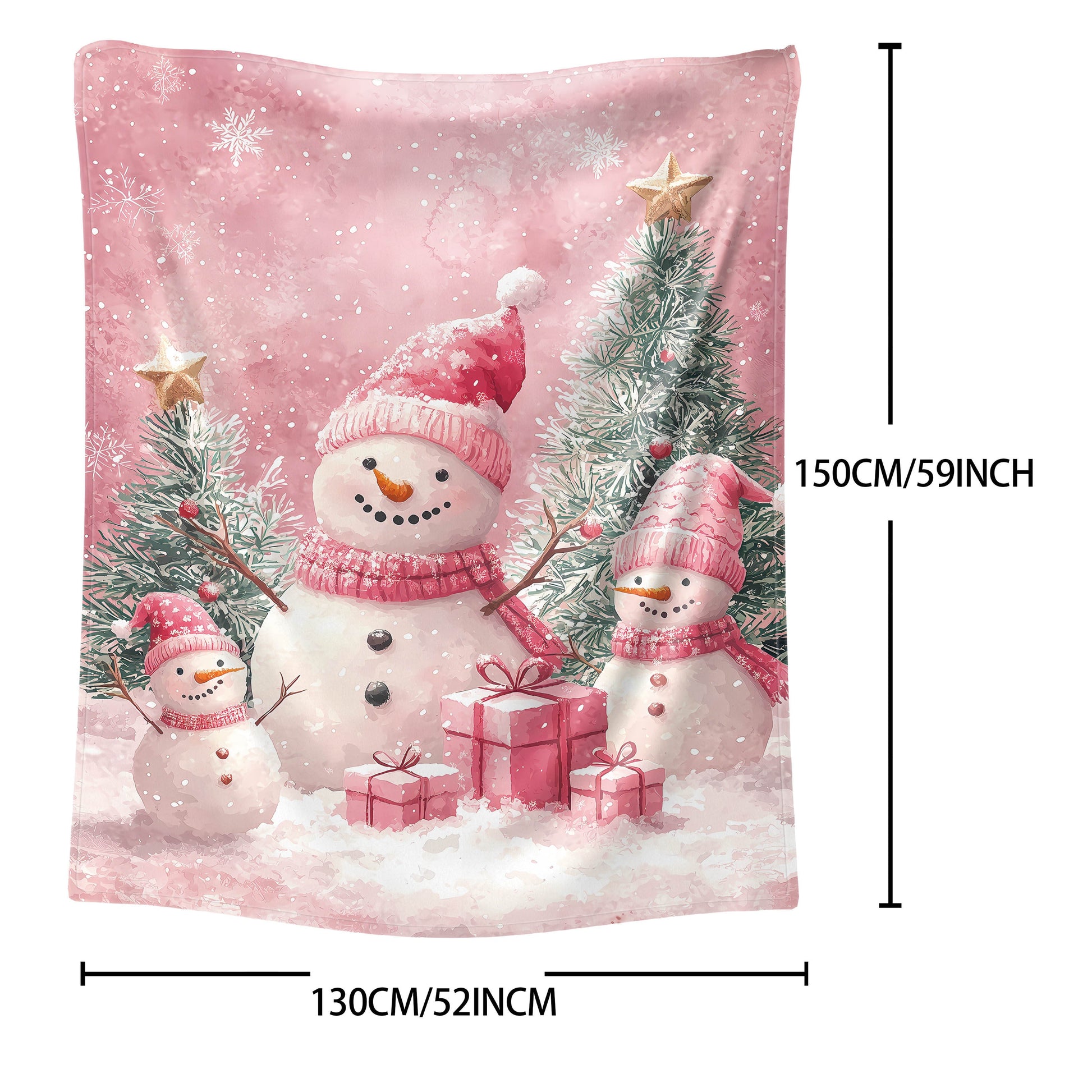 Mid-Century Style Christmas Flannel Throw Blanket Snowmen Presents Trees Soft Polyester Knit All-Season Cozy Lightweight