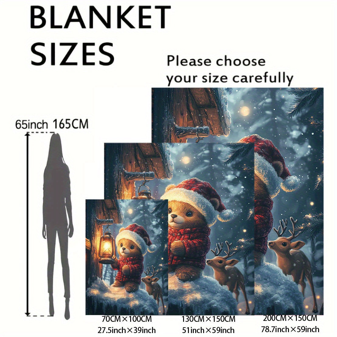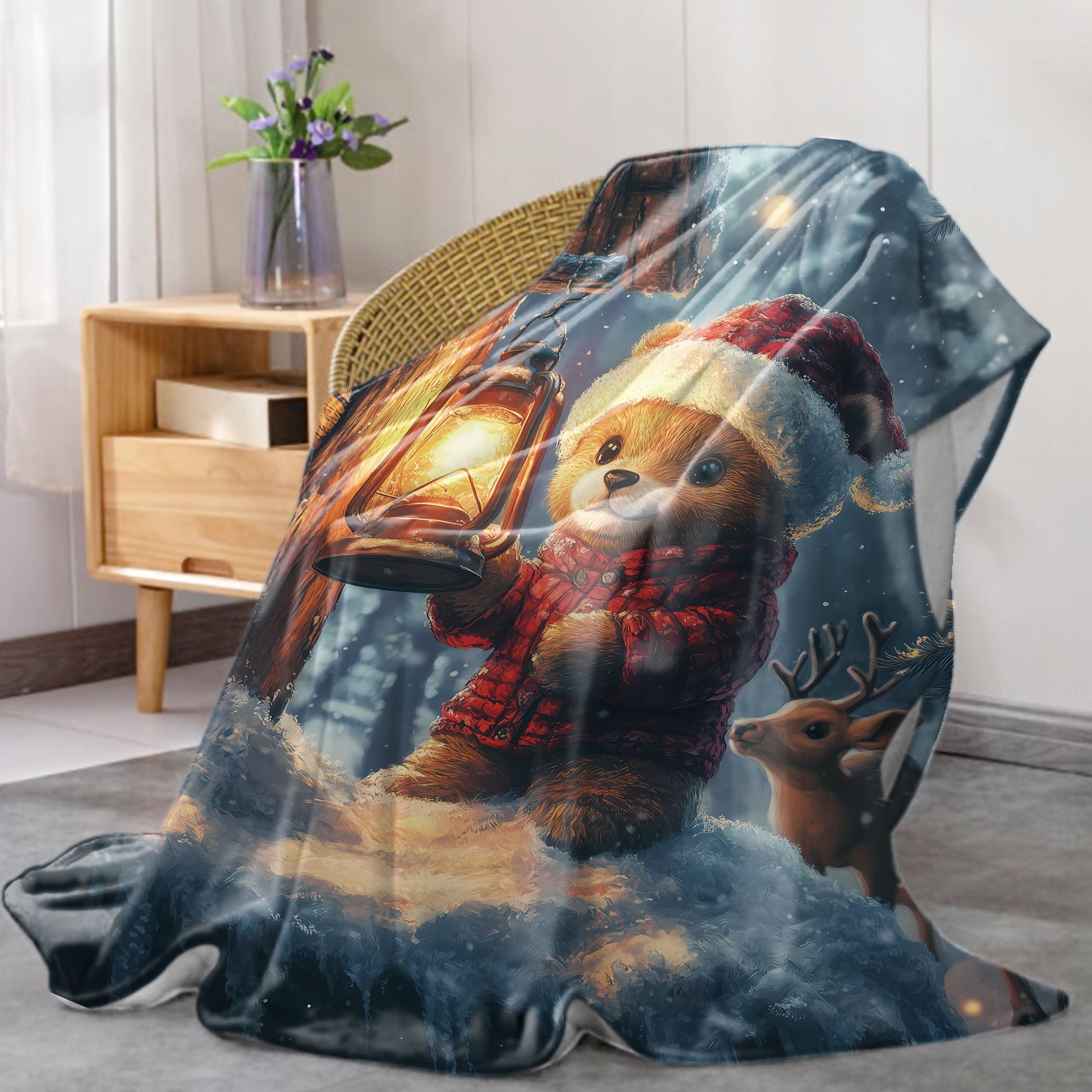 Christmas Teddy Bear and Deer Print Flannel Blanket Soft Cozy Throw for Bed Sofa Office Camping