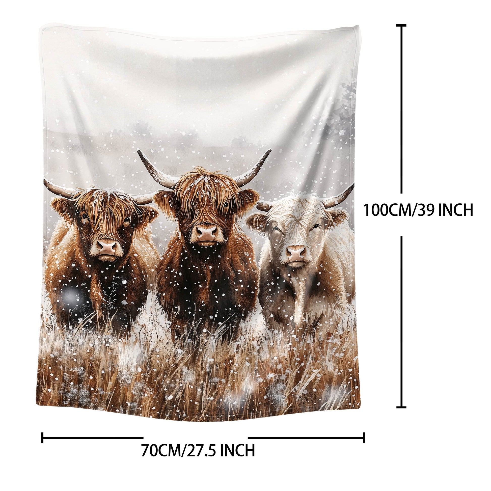 Highland Cows Print Flannel Throw Blanket Soft Polyester Knit Cozy All-Season Sofa Bed Cover Watercolor Animal Design Lightweight Warmth