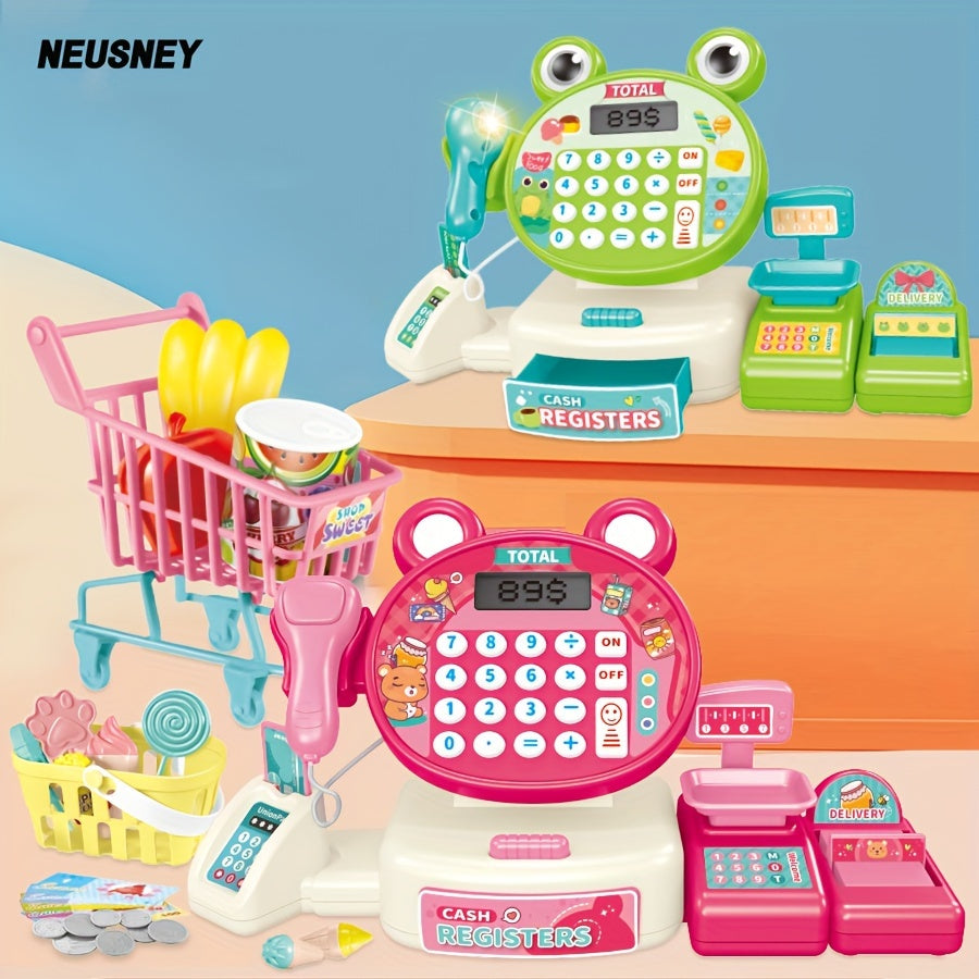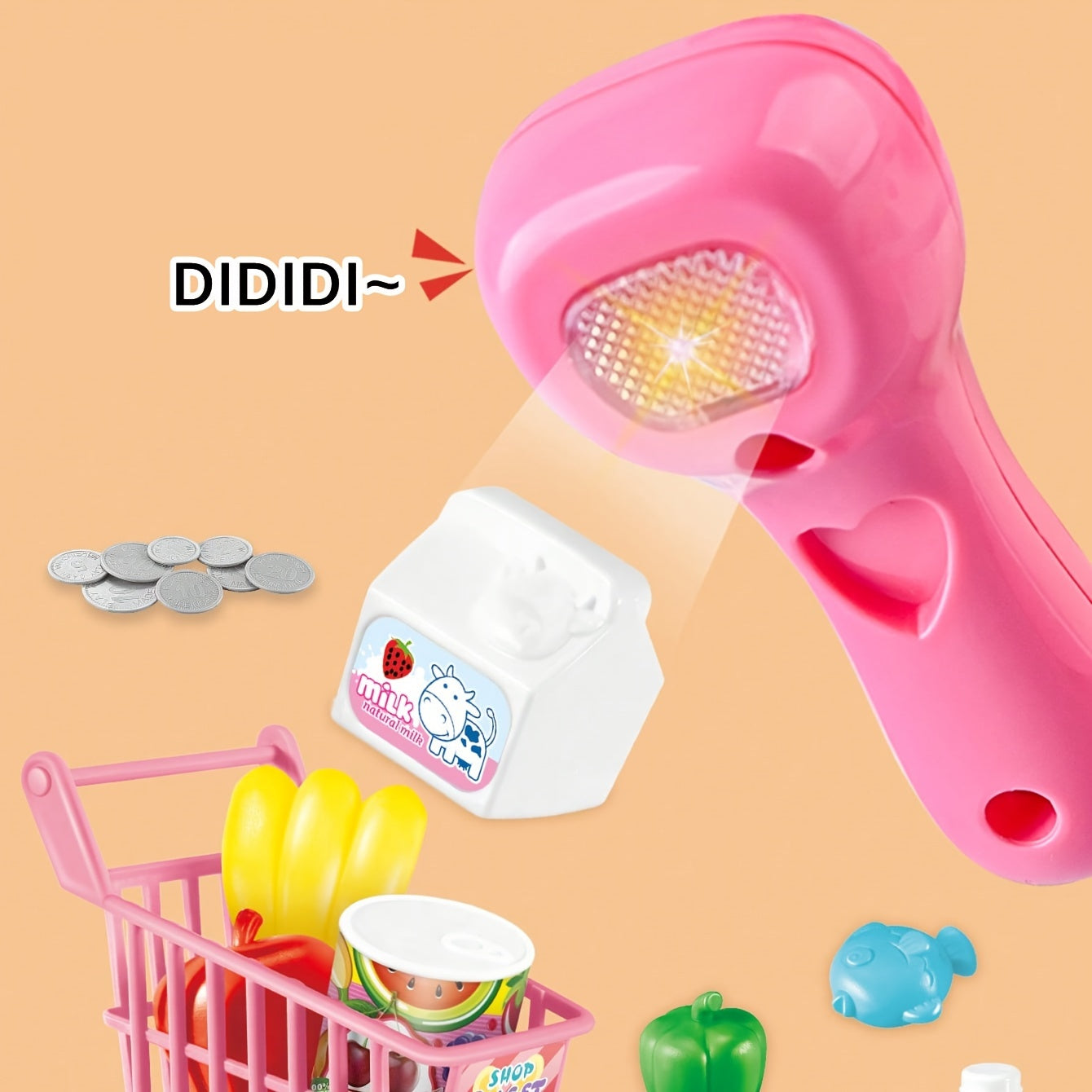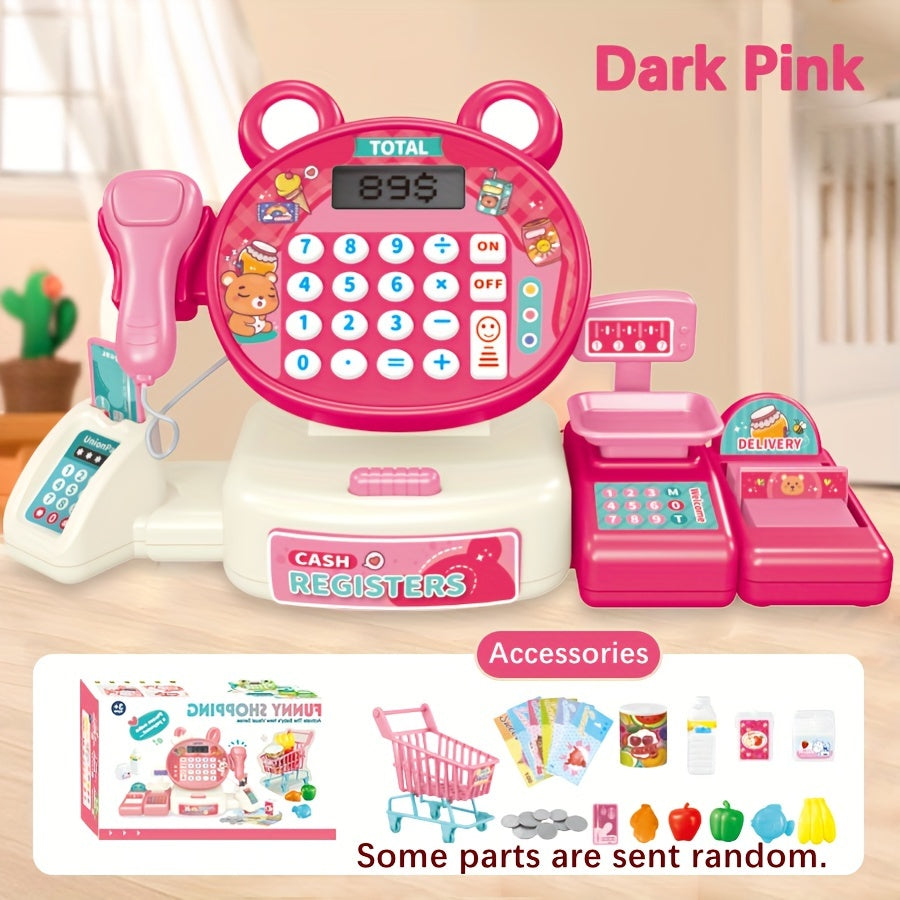 Mini Cash Register Pretend Play Set with Scanner Credit Card and Fruits for Kids 3+