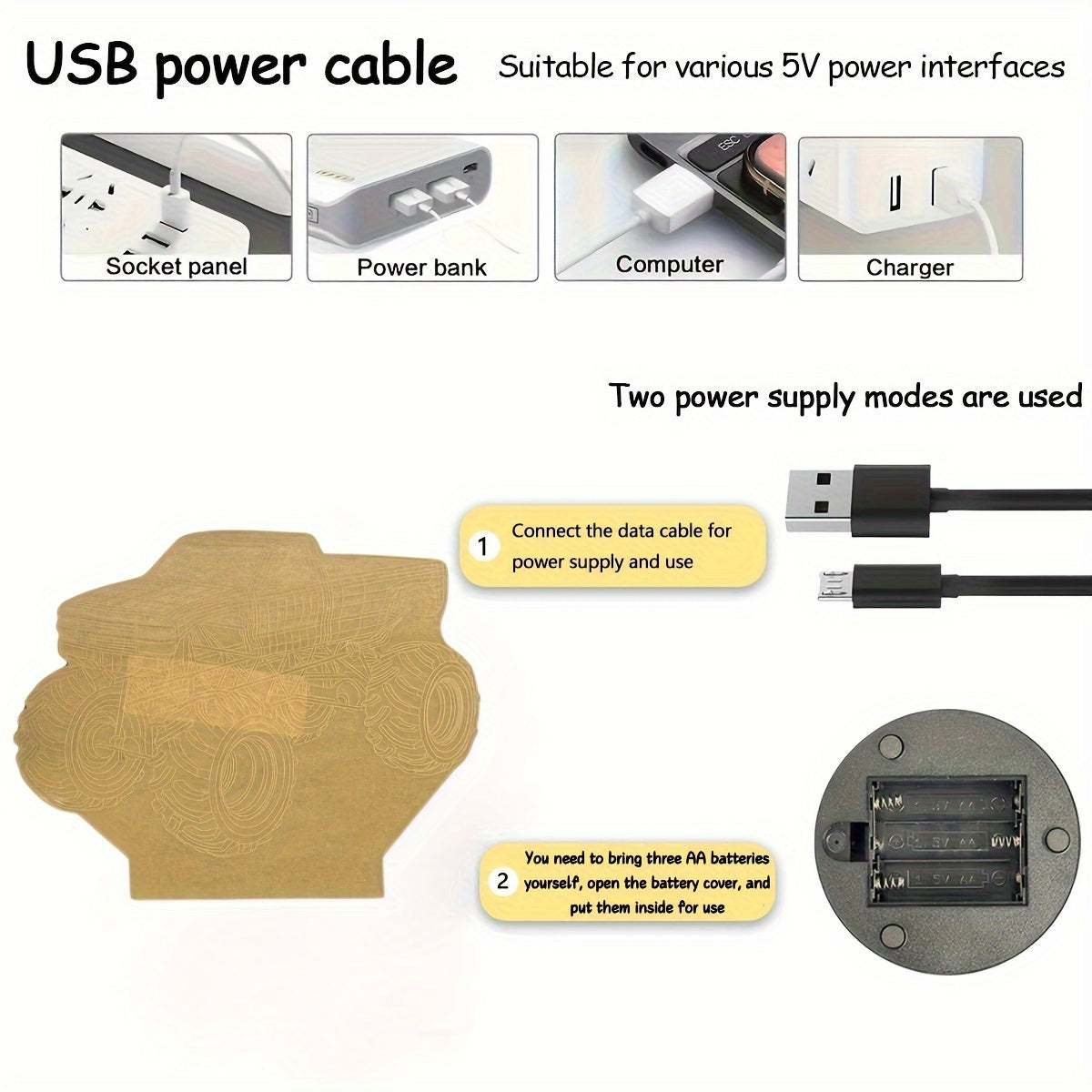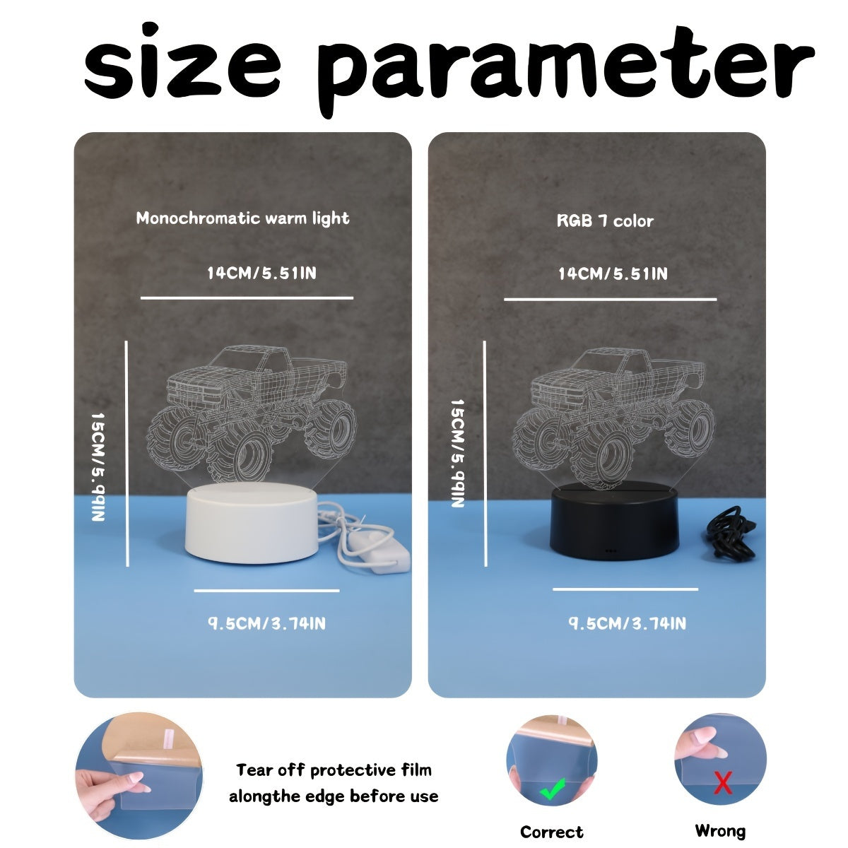 Modern Monster Truck 3D Illusion Table Lamp Touch Control USB Desk Night Light