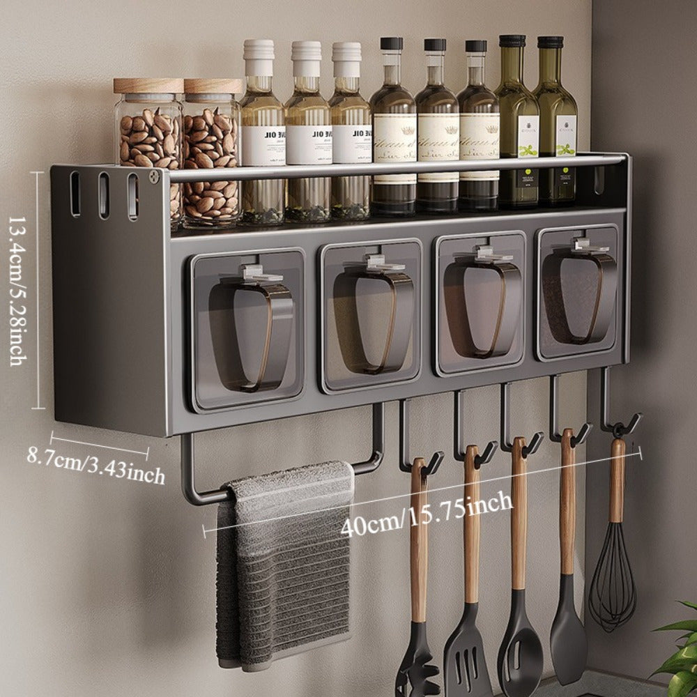 Modern Wall-Mounted Metal Spice Rack Organizer with Hanging Shelf for Kitchen Storage