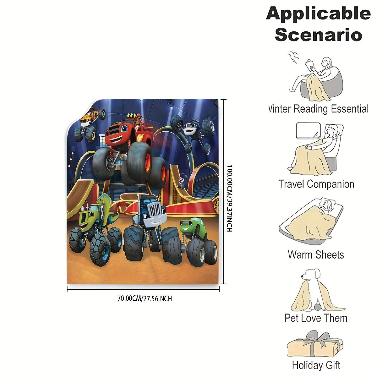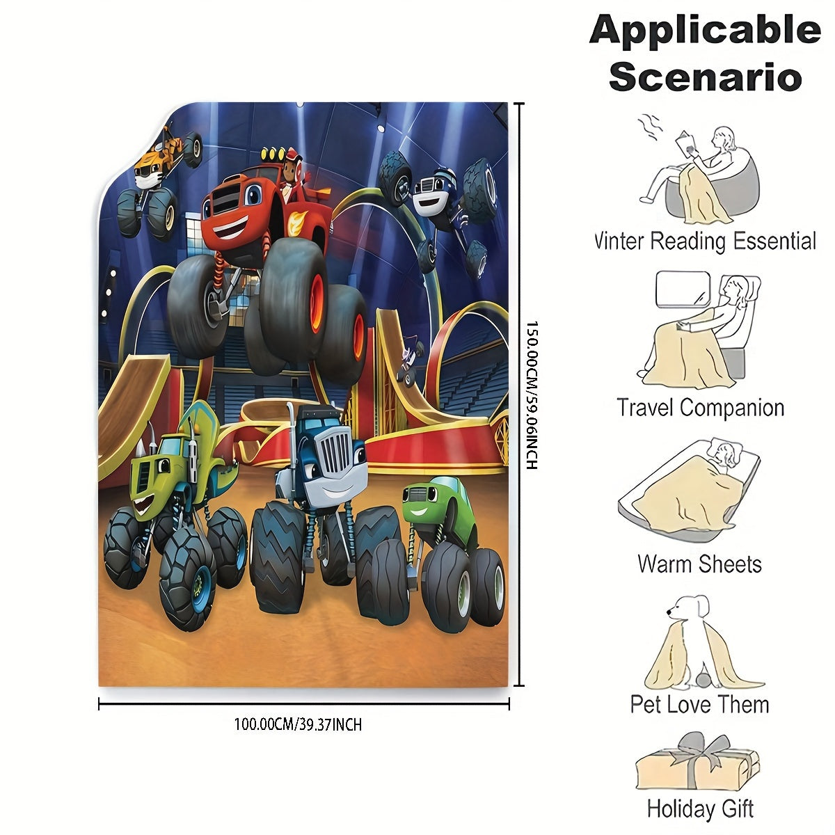 Monster Truck Flannel Fleece Throw Blanket Cartoon Design Hypoallergenic Easy to Clean Versatile Bedding