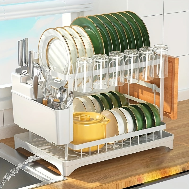 Multifunctional Carbon Steel Kitchen Organizer for Bowls Plates and Utensils with Drainage Board