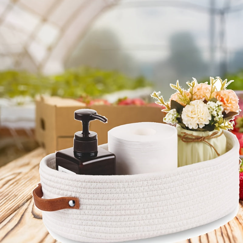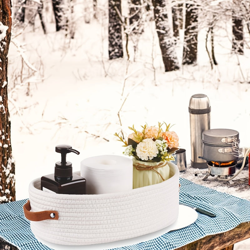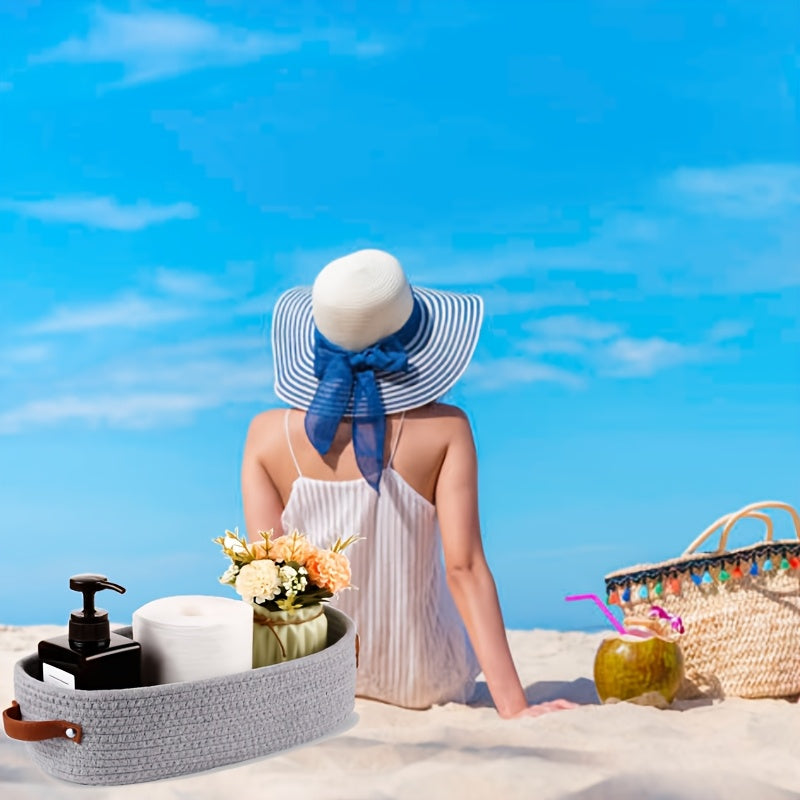 Woven Storage Basket with Dual Handles for Desk and Bathroom Organization Black Grey Yellow