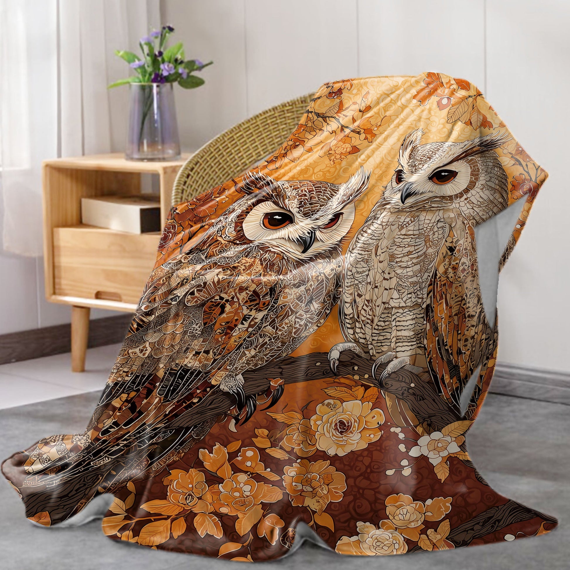 Flannel Blanket for Bed Sofa and Camping Floral Owls Animal Print Lightweight Polyester All-Season