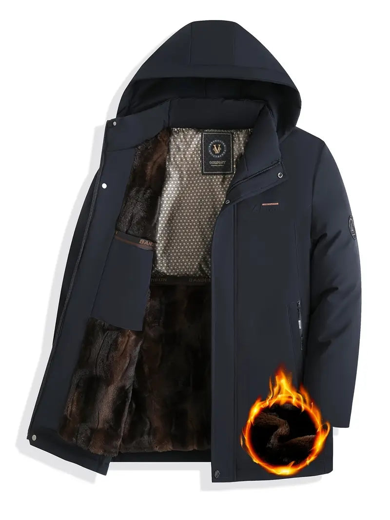 Men's Navy Blue Winter Jacket with Detachable Hood Fleece Lined Breathable Zipper Coat