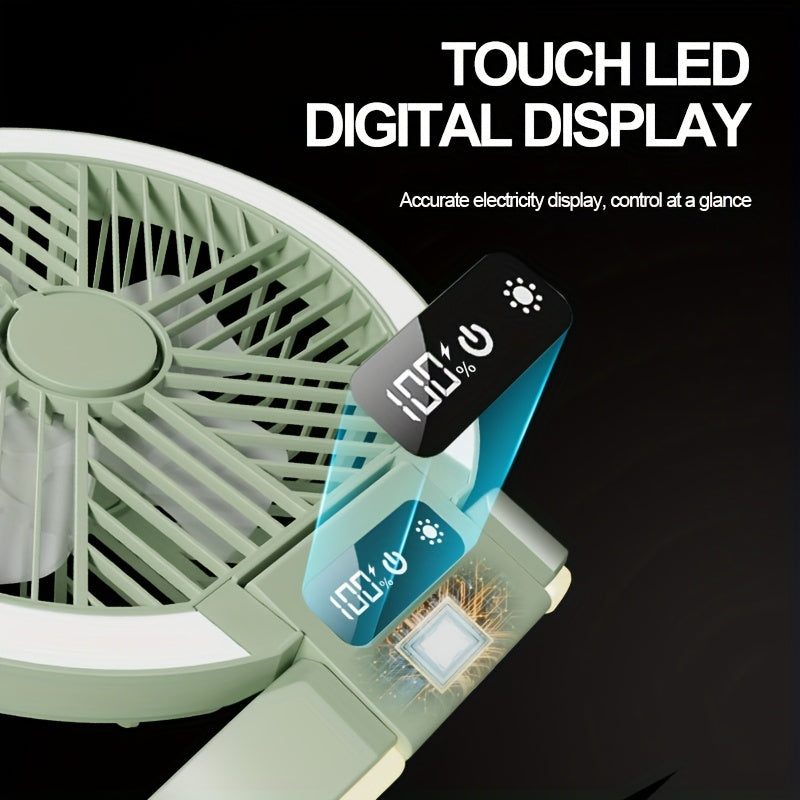 Portable Folding Fan with Lights USB Rechargeable Multi-Speed High Wind for Camping Home Dormitory