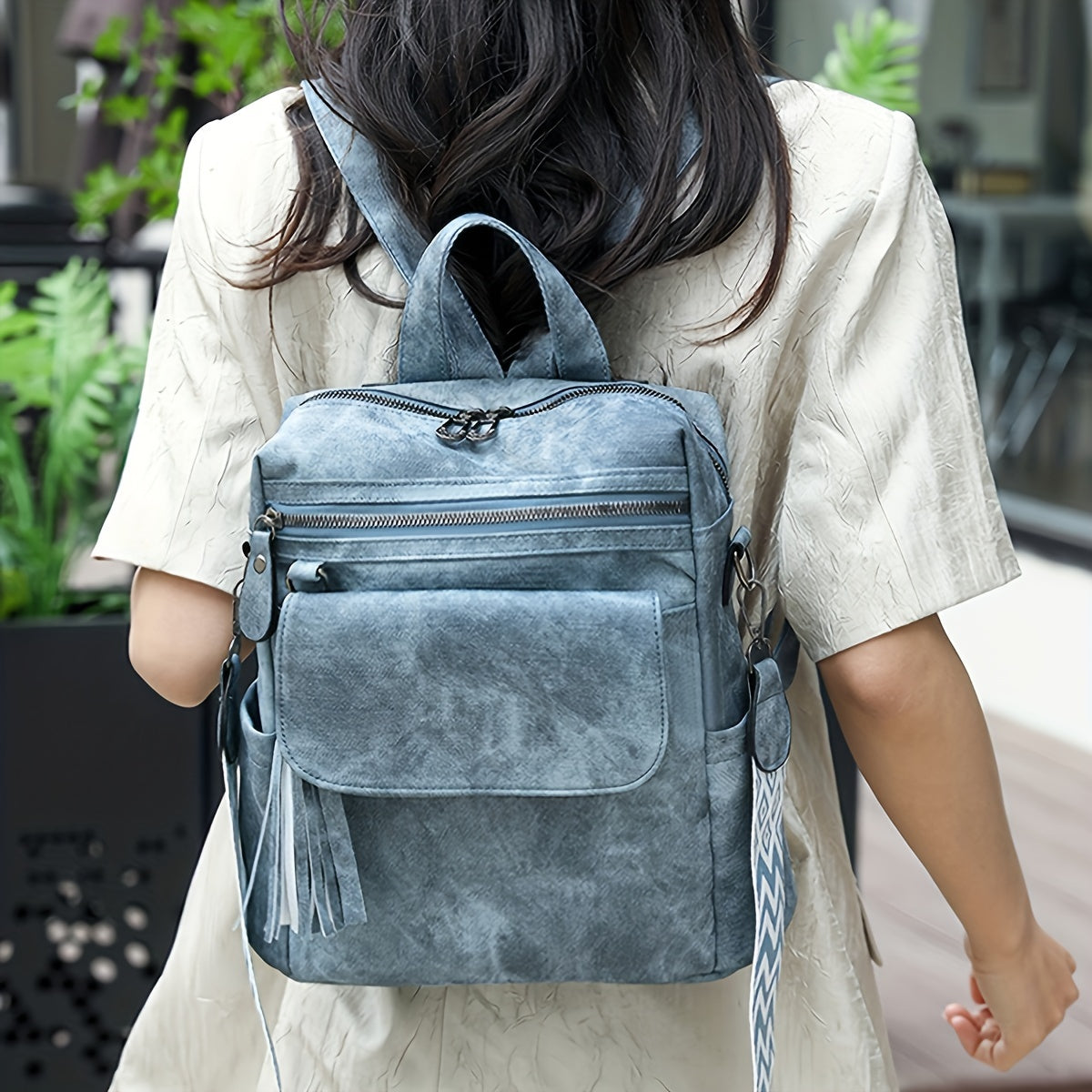 Women's PU Double Shoulder Bag for Autumn Winter Casual Crossbody Backpack with Tassels