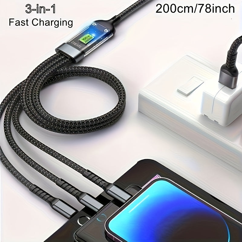 High-Speed 100W 3-in-1 Nylon Fast Charging Cable for iPhone Samsung Xiaomi USB-C Micro USB Lightning