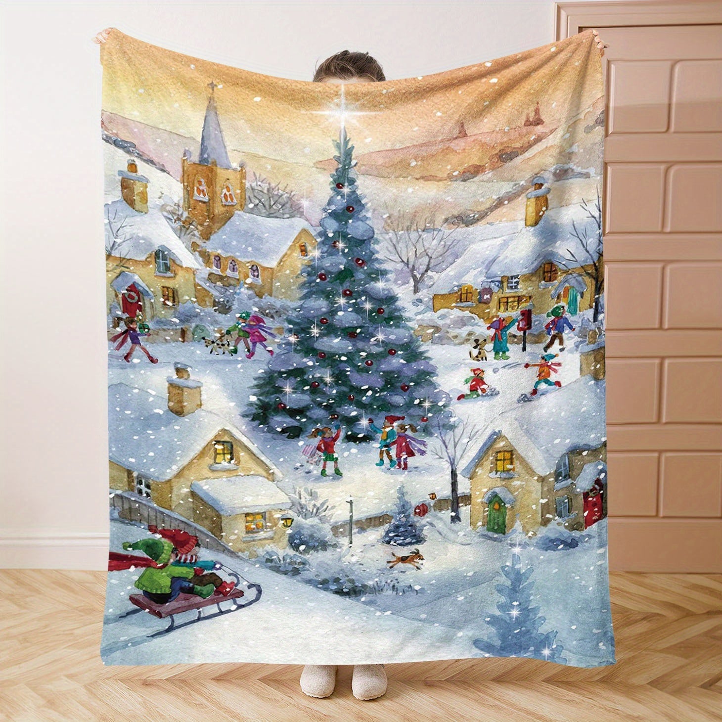 Christmas Themed Flannel Blanket Throw for Bed Sofa Camping Digital Print Polyester Fabric
