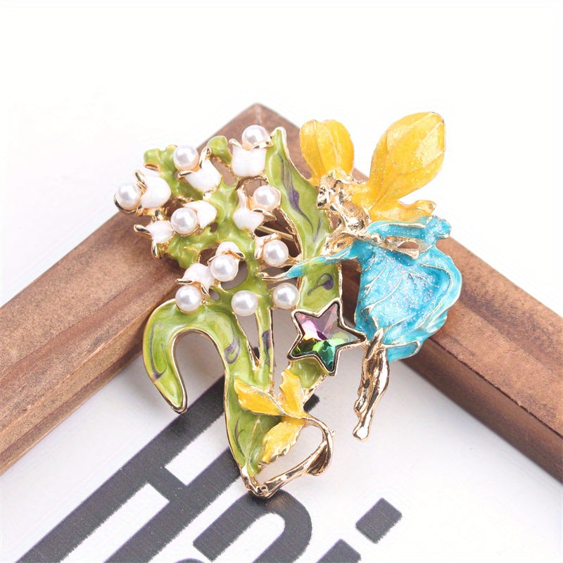 Minimalist Angel Fairy Enamel Brooch with Resin Flowers Irregular Shape Jewelry