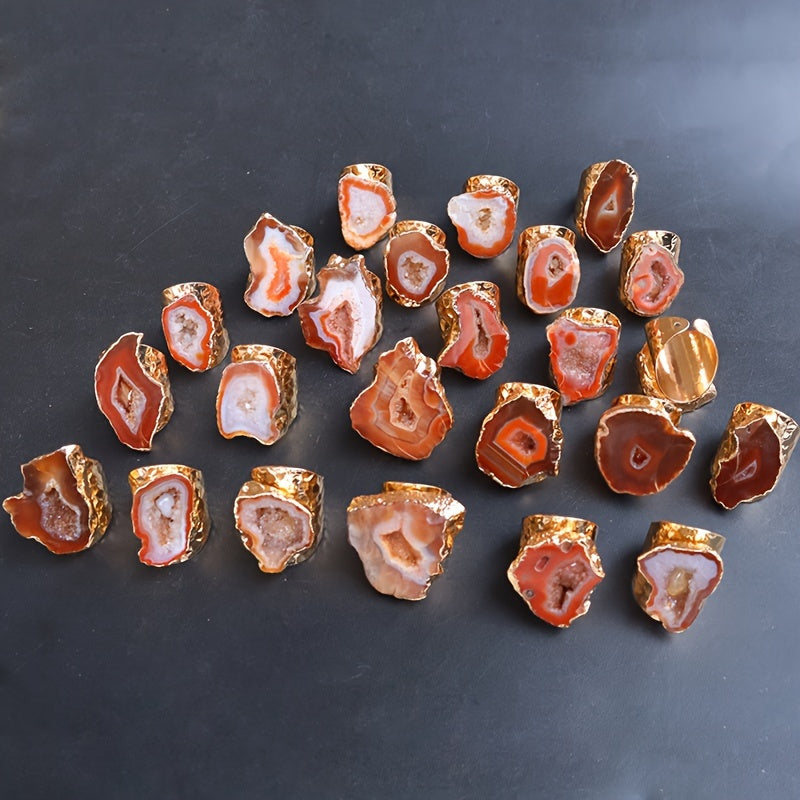 Women's Natural Onyx Geode Adjustable Ring with Copper Frame and Agate Crystal