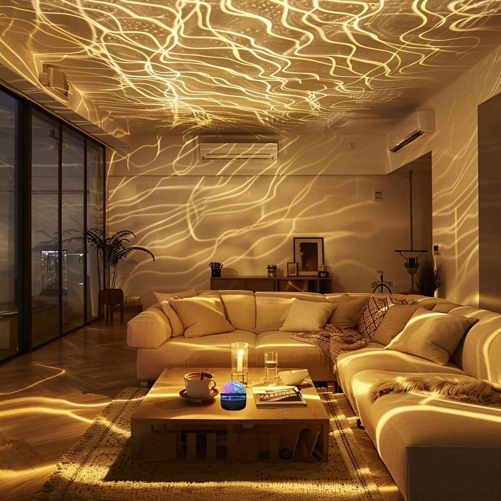Water Ripple LED Night Light with Remote Control USB Powered Dimmable Black Plastic