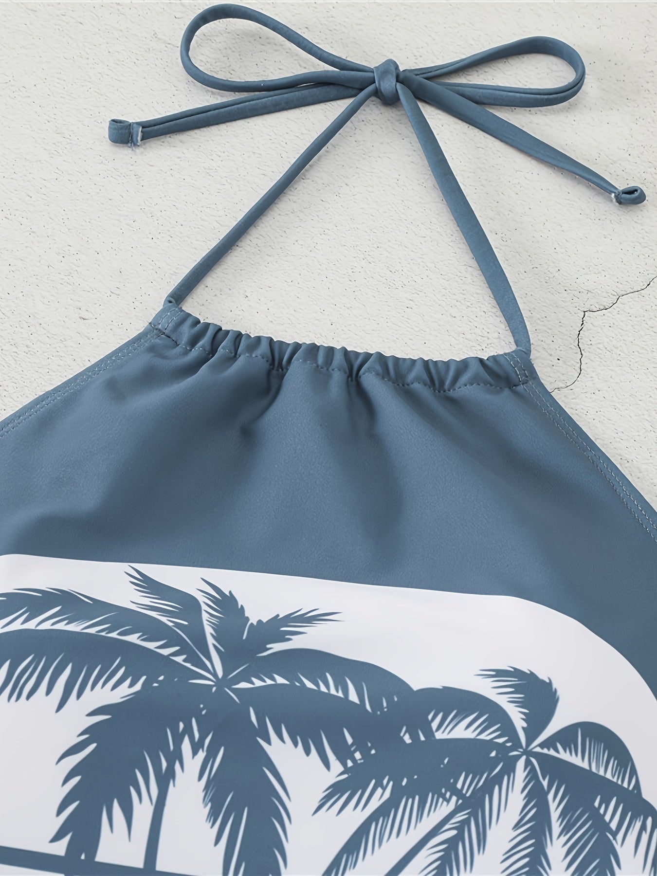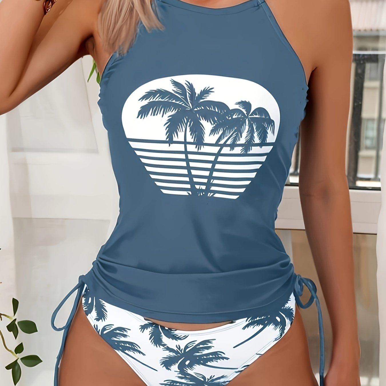 Women's Swimsuit Tankini Set with Padded Bra and Palm Tree Print Polyester Elastane