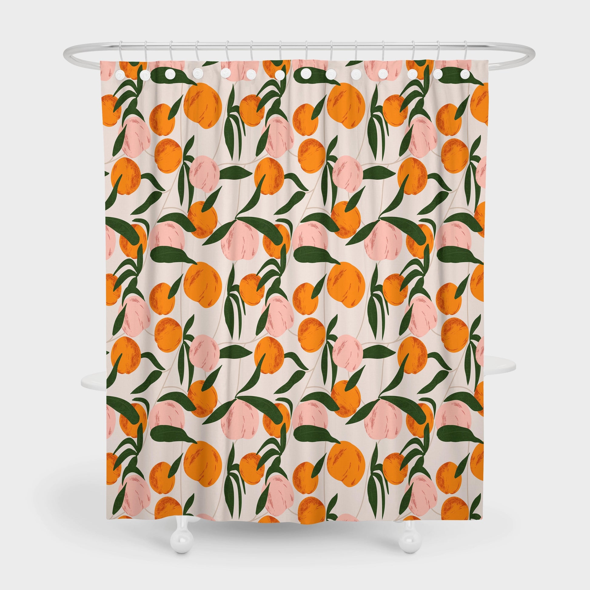 Peach Cartoon Shower Curtain Waterproof with 12 Hooks Bathroom Decor