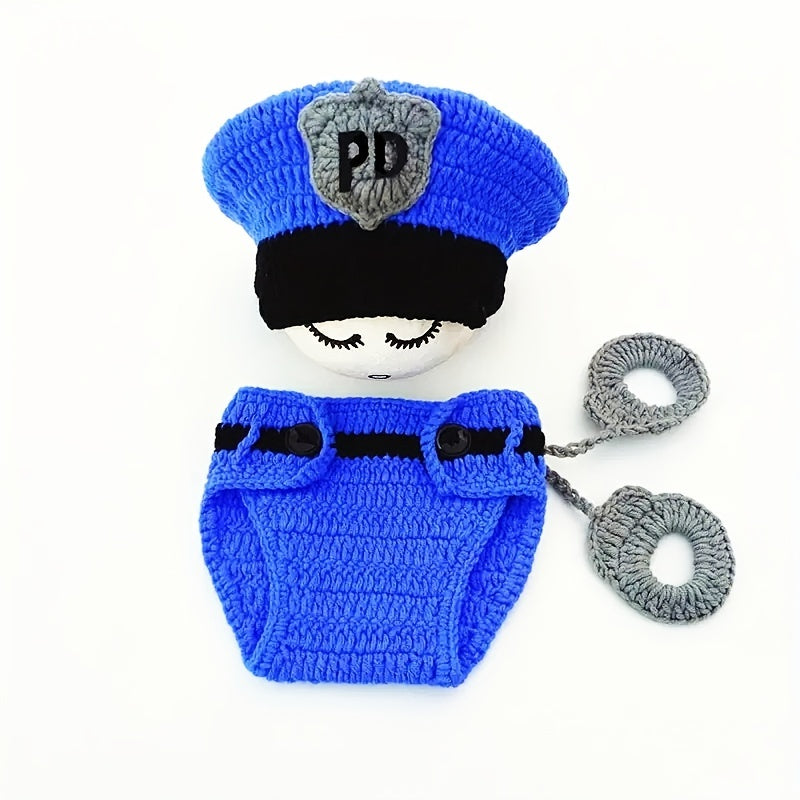 Baby Boy Costume Blue Police Hat and Shorts for Newborn Photo Shoots