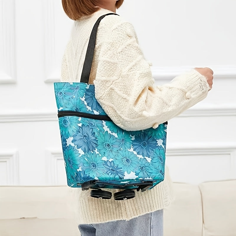 Foldable Shopping Cart Trolley with Wheels Waterproof Oxford Fabric Large Capacity