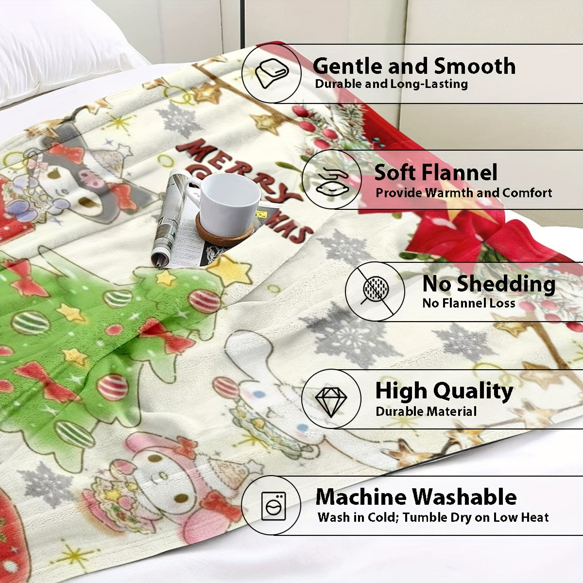 Personalized Christmas Hello Kitty Blanket Soft Fleece Gift for Bed Sofa Car Home