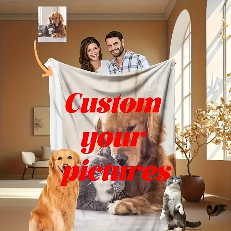 Personalized Floral Pattern Photo Print Throw Blanket All-Season Stain-Resistant Polyester