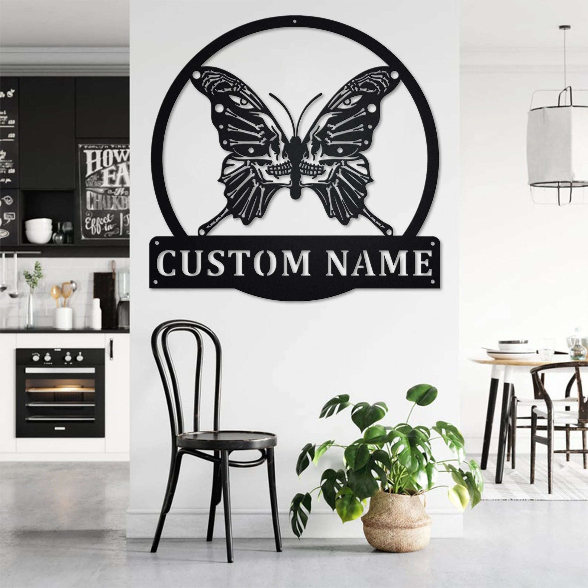 Personalized Metal Wall Art - Black Skeleton Butterfly Sign with Nameplate for Home Decor