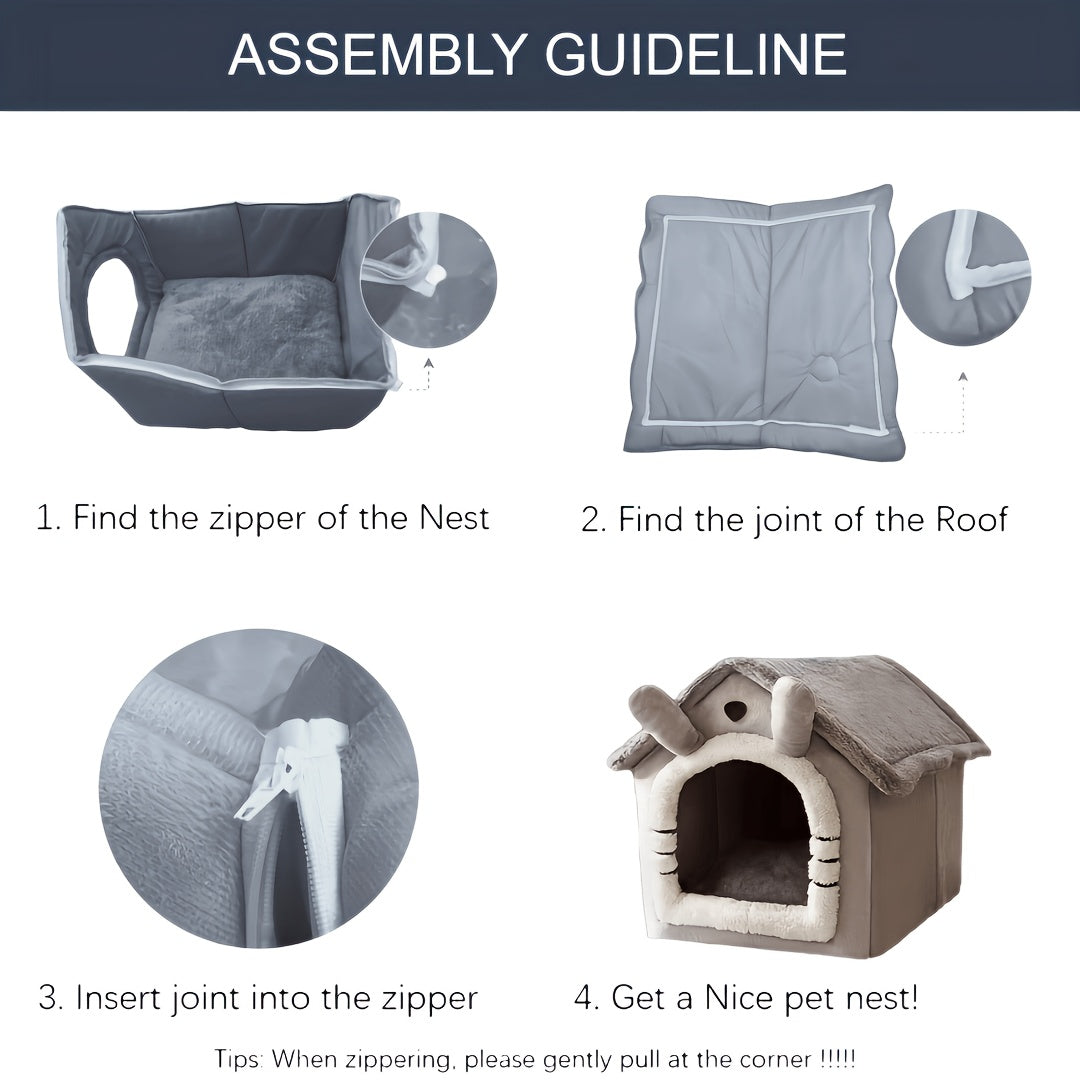 Pet House for Cats and Dogs with Washable Winter Bed Soft Polyester Classic Style