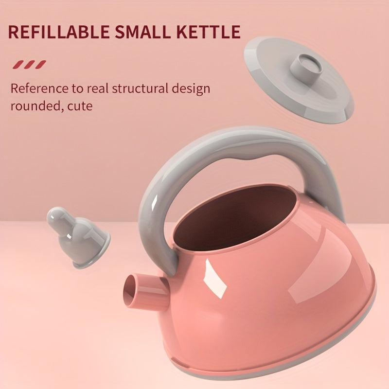Pink Children's Play Kitchen Toys with Pots Pans and Tableware for Kids