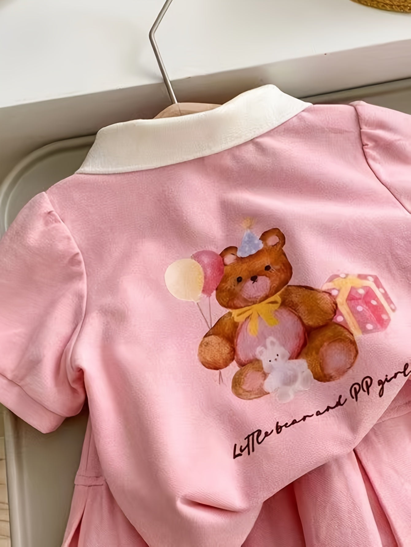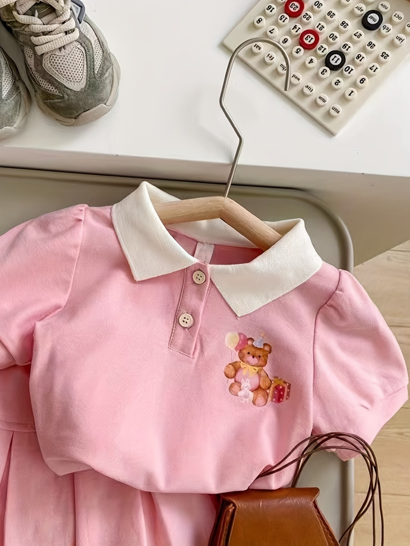 Girls Summer Outfit Pink Floral Short-Sleeve Top and Pleated Skirt Set Cotton Blend