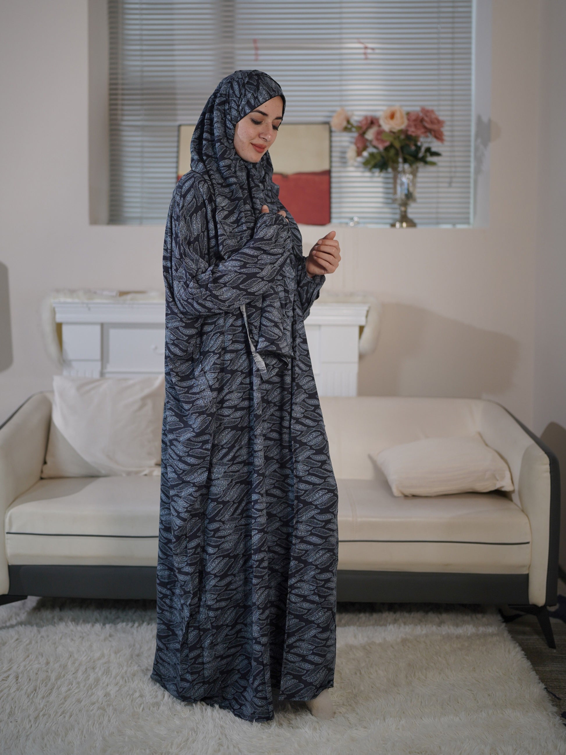 Plus Size Casual Long Sleeve Maxi Dress with Hijab for Women