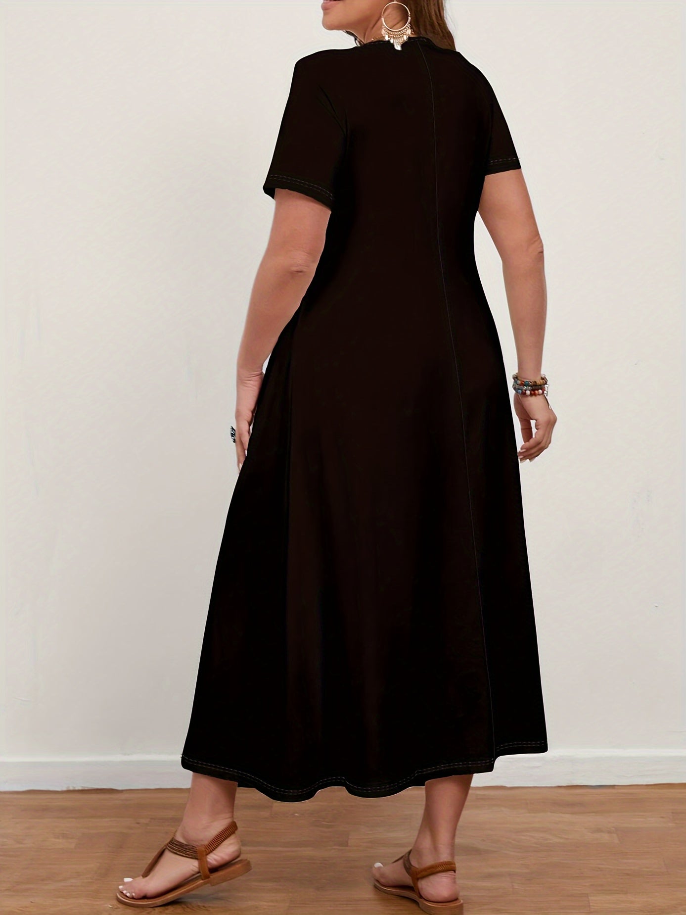 Plus Size Floral Print Maxi Dress for Spring Summer V-Neck Polyester