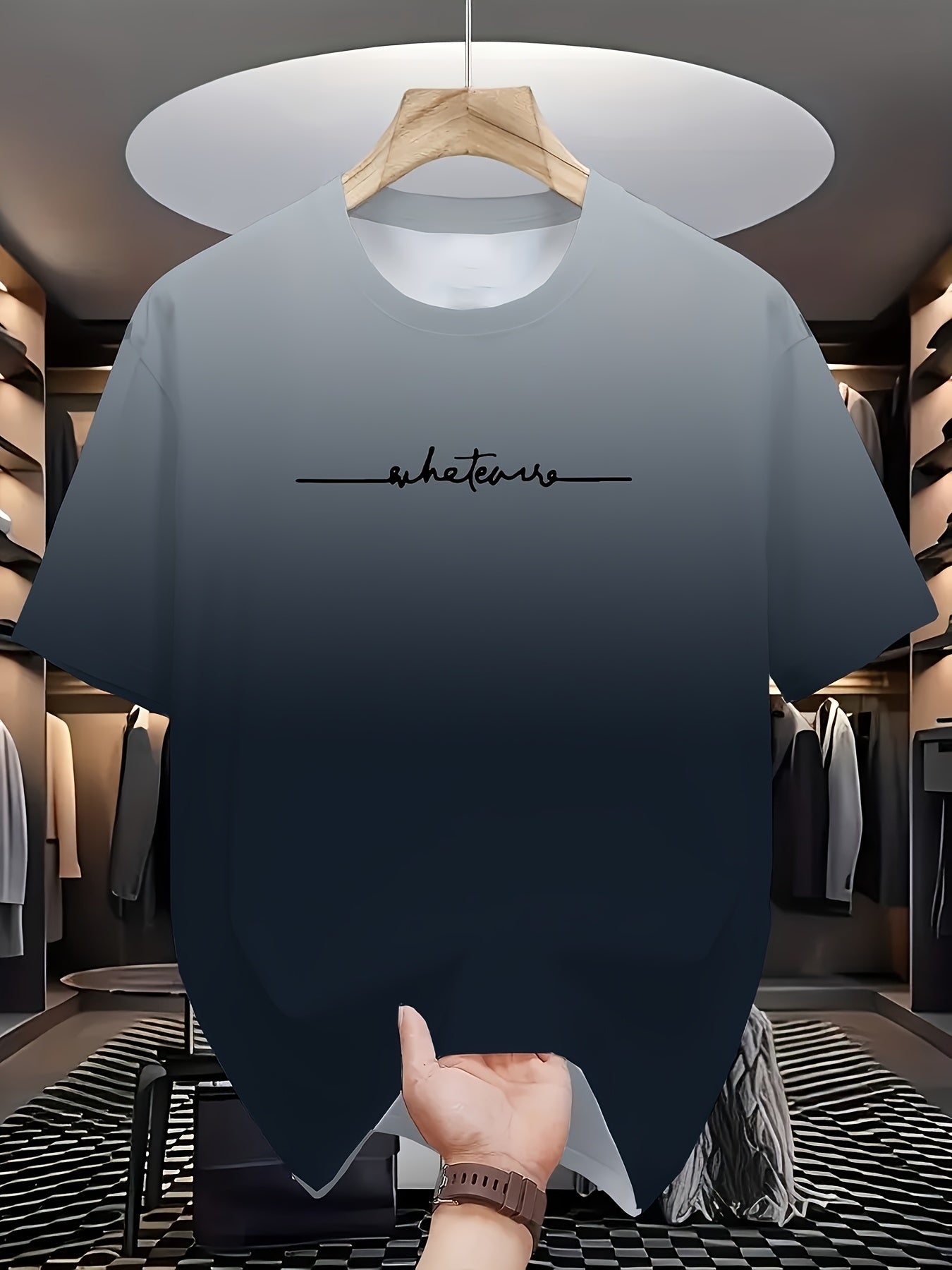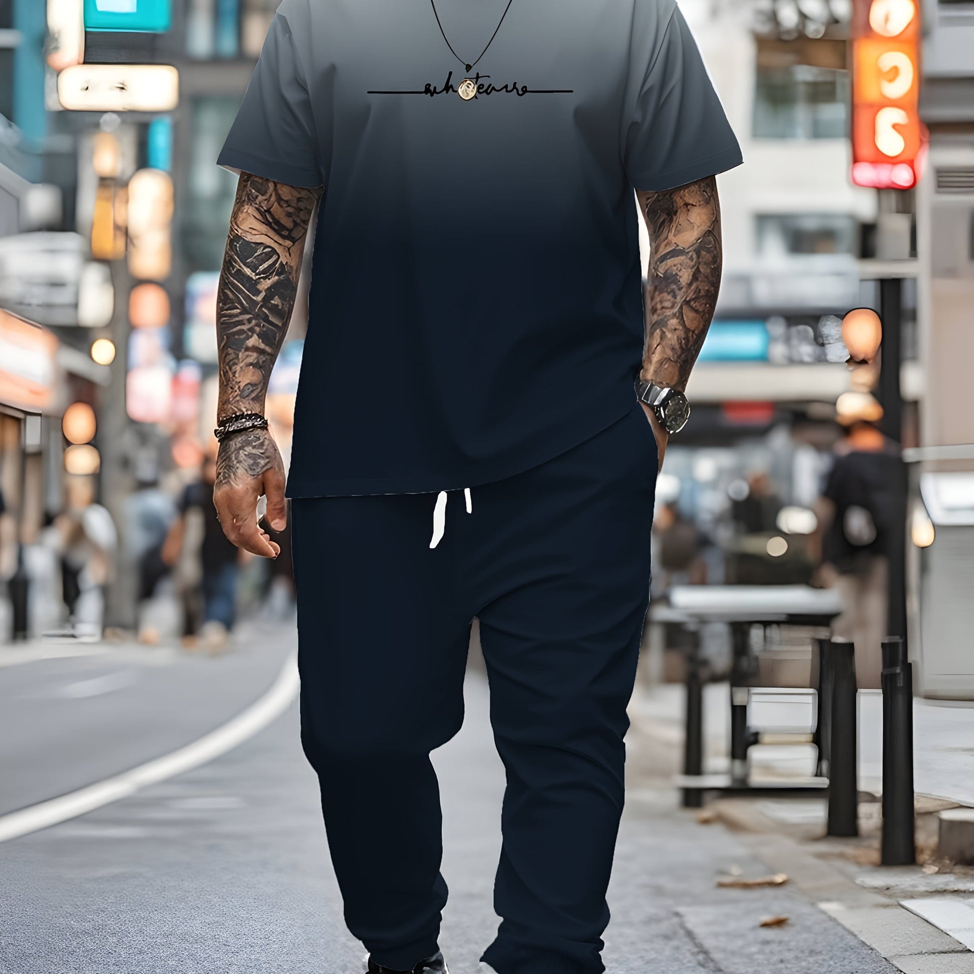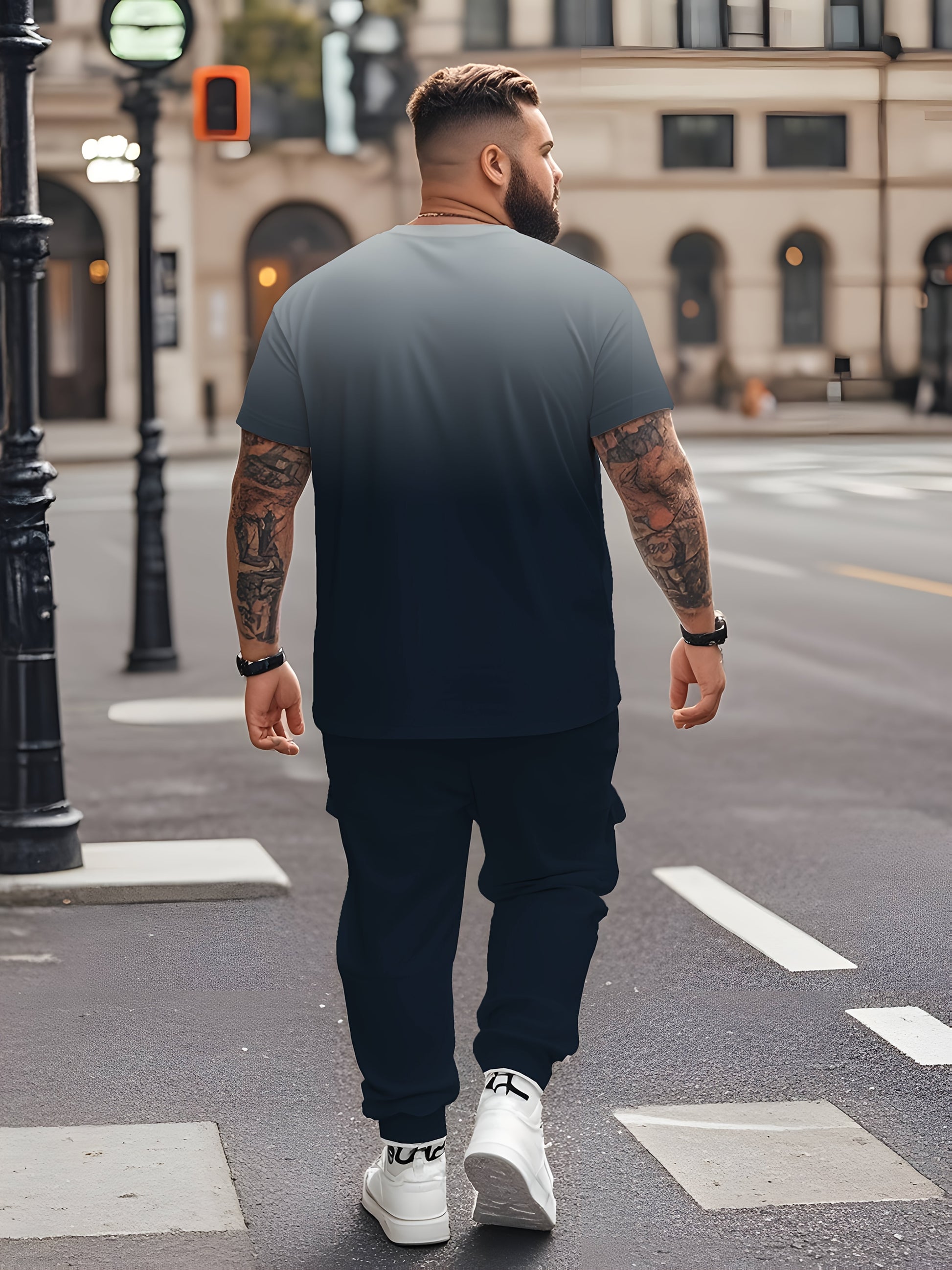 Plus Size Men's Ombre Sweatsuit Set with Crew Neck T-Shirt and Drawstring Pants