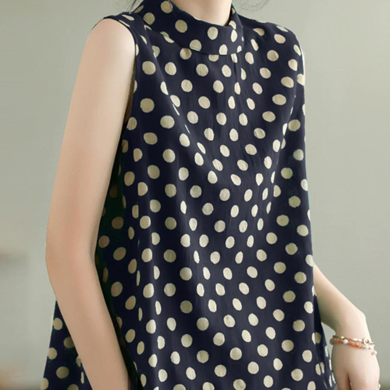 Plus Size Polka Dot Sleeveless Rayon Blend A-Line Tank Top for Summer Casual