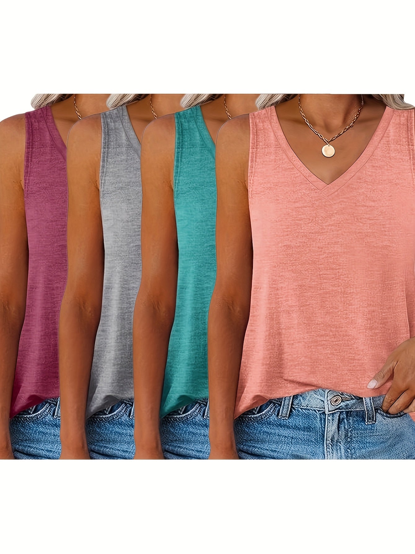 Plus Size Sleeveless V-Neck Tank Top Soft Stretch All-Season Casual Apparel