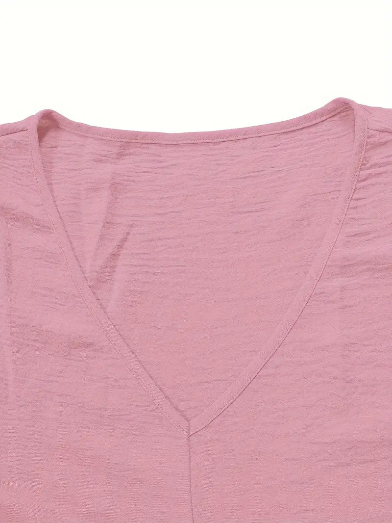 Plus Size Solid Ruched Tiered Dress Short Sleeve V-Neck Summer Loose Fit Women