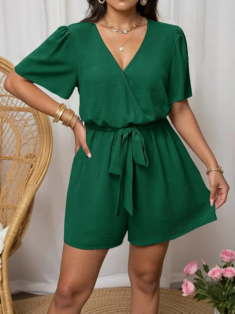 Plus Size Summer Casual Wide-Leg Jumpsuit Shorts for Women