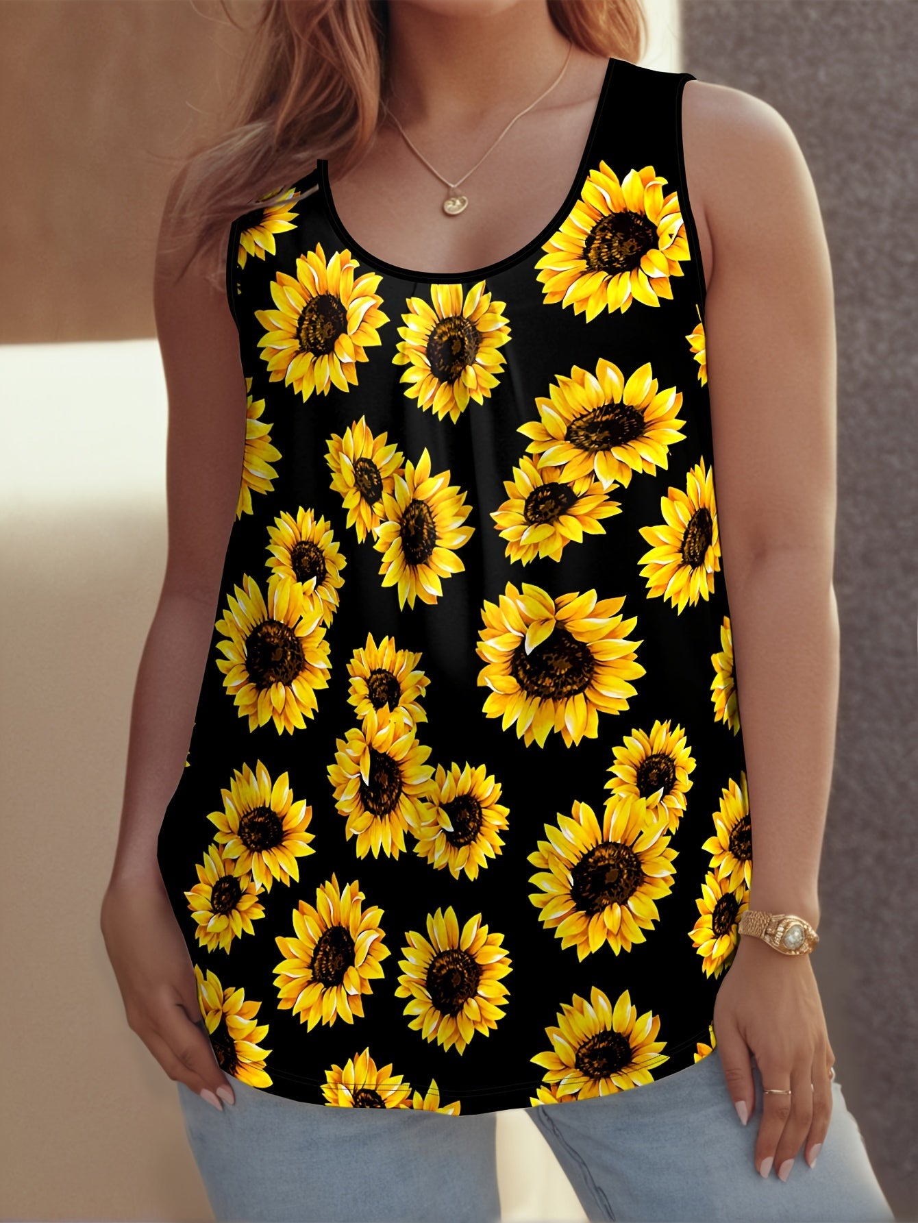 Plus Size Sunflower Print Tank Top Sleeveless Summer Women's Clothing