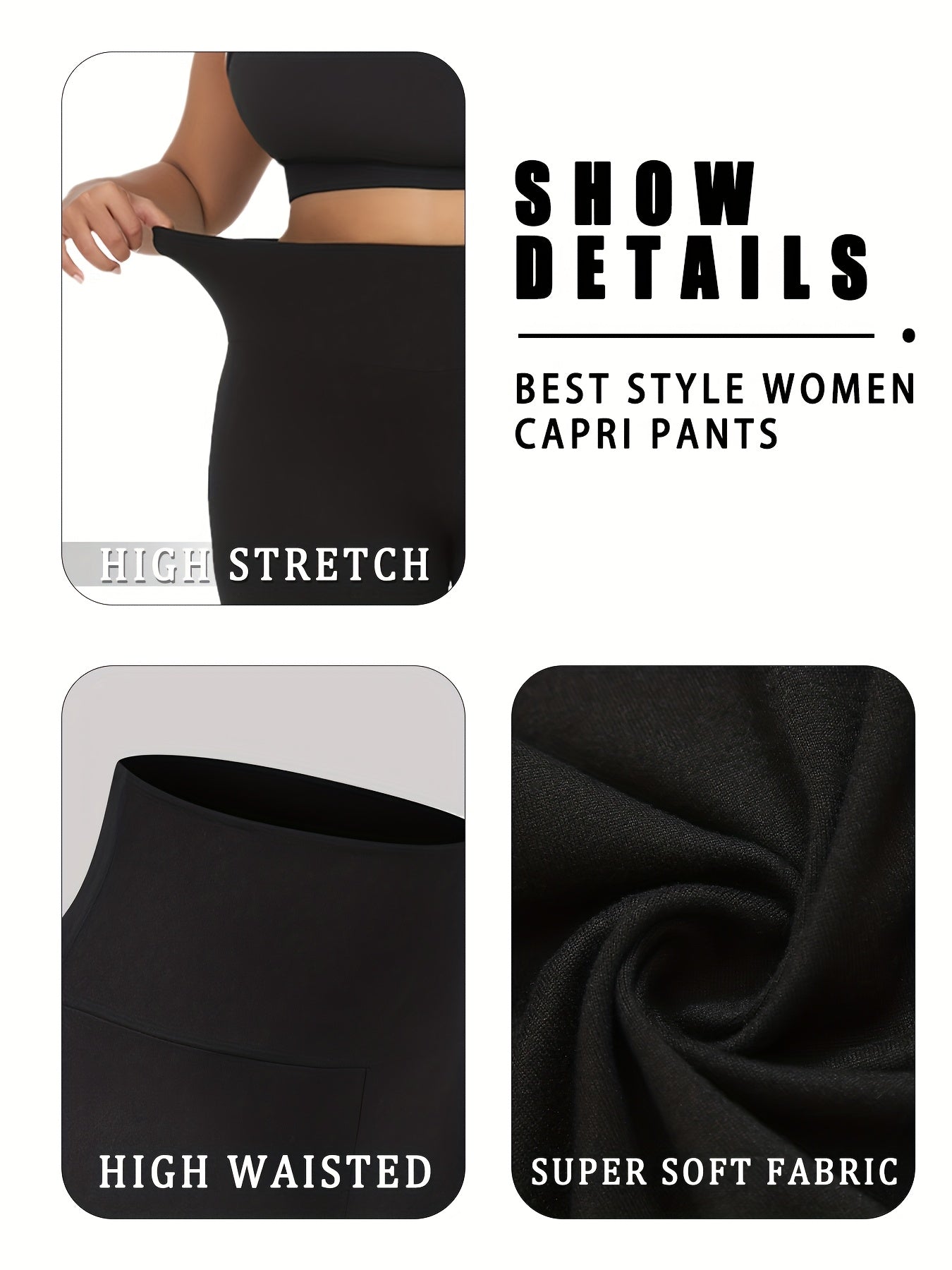 Plus Size Women High Waisted Capri Pants Tummy Control Yoga Athletic
