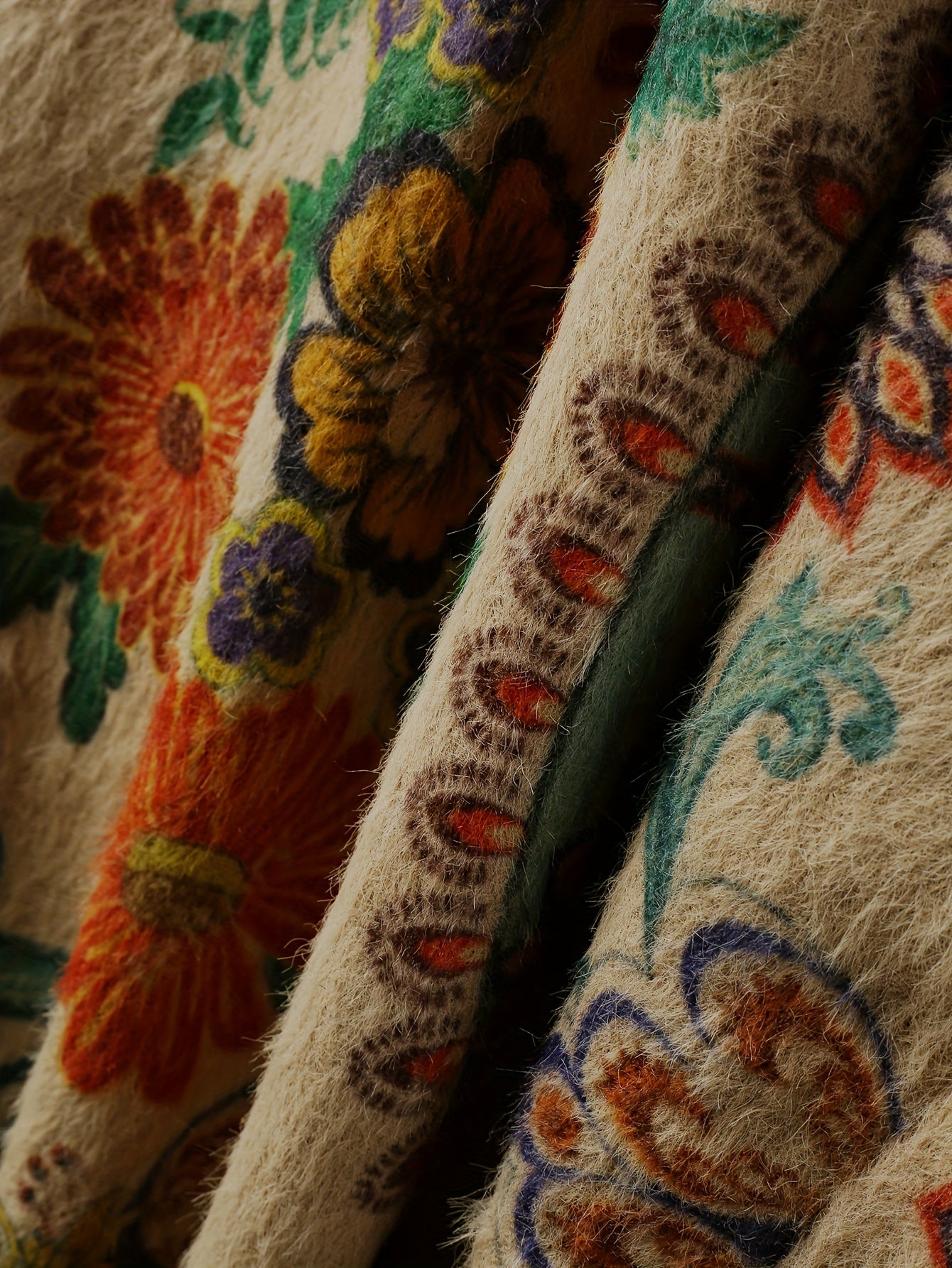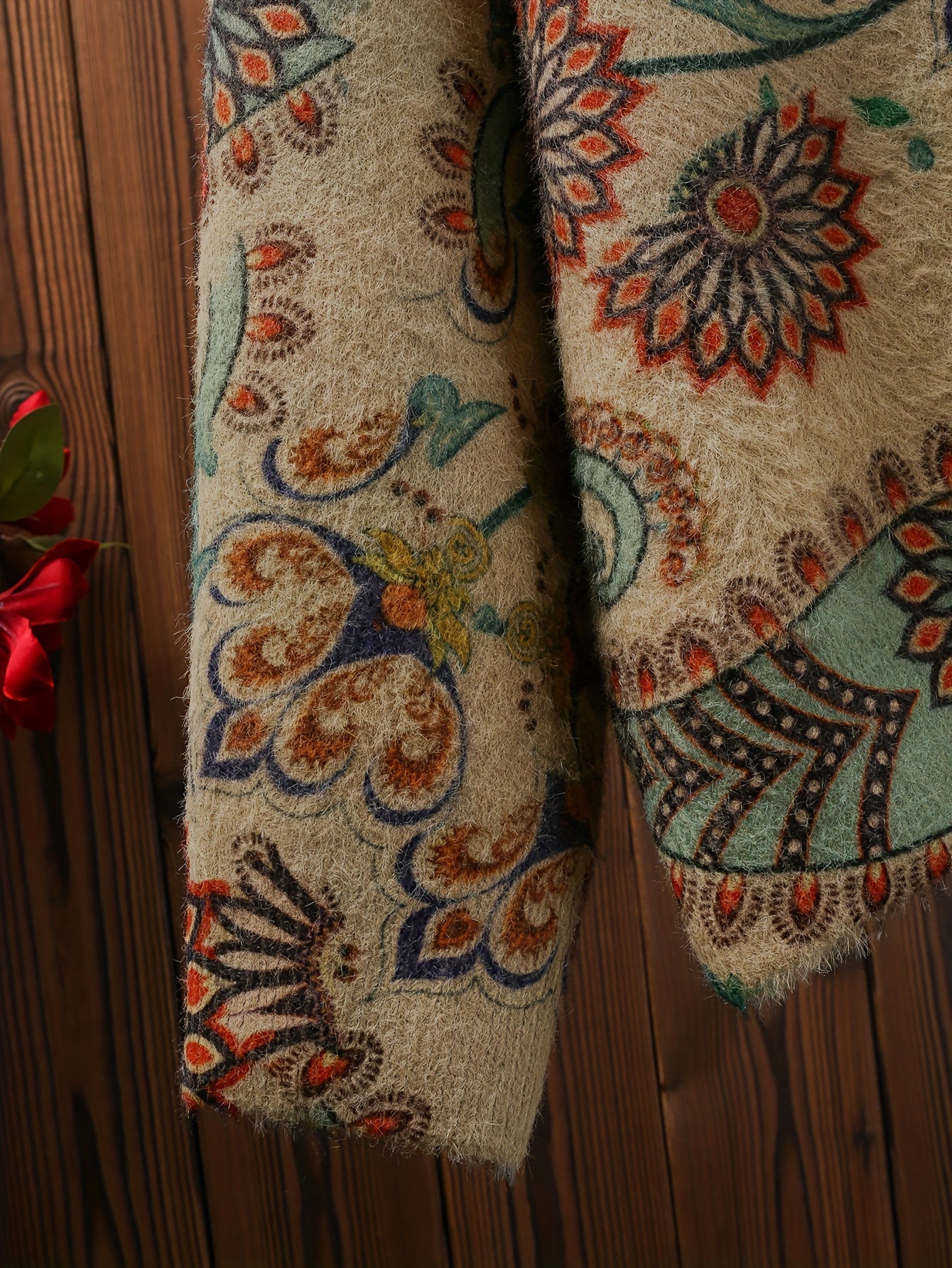 Plus Size Women's Autumn Winter Floral Print Cardigan Long Sleeve Open Front Sweater