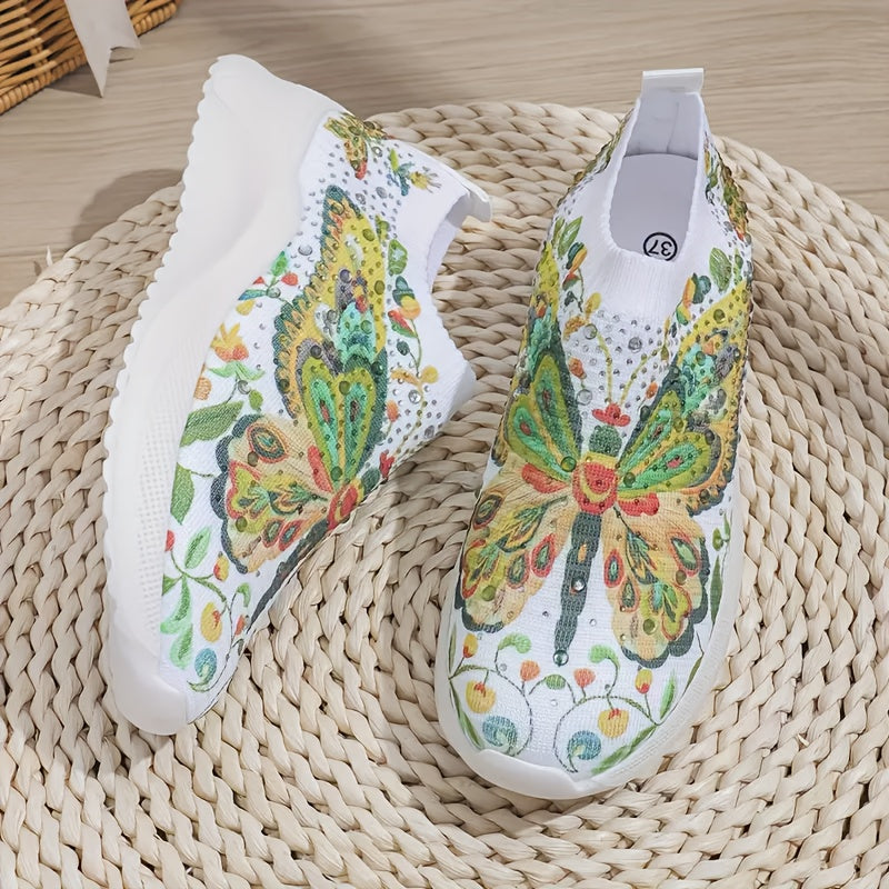 Plus-Size Women's Butterfly Slip-On Sneakers Lightweight Breathable Rhinestone