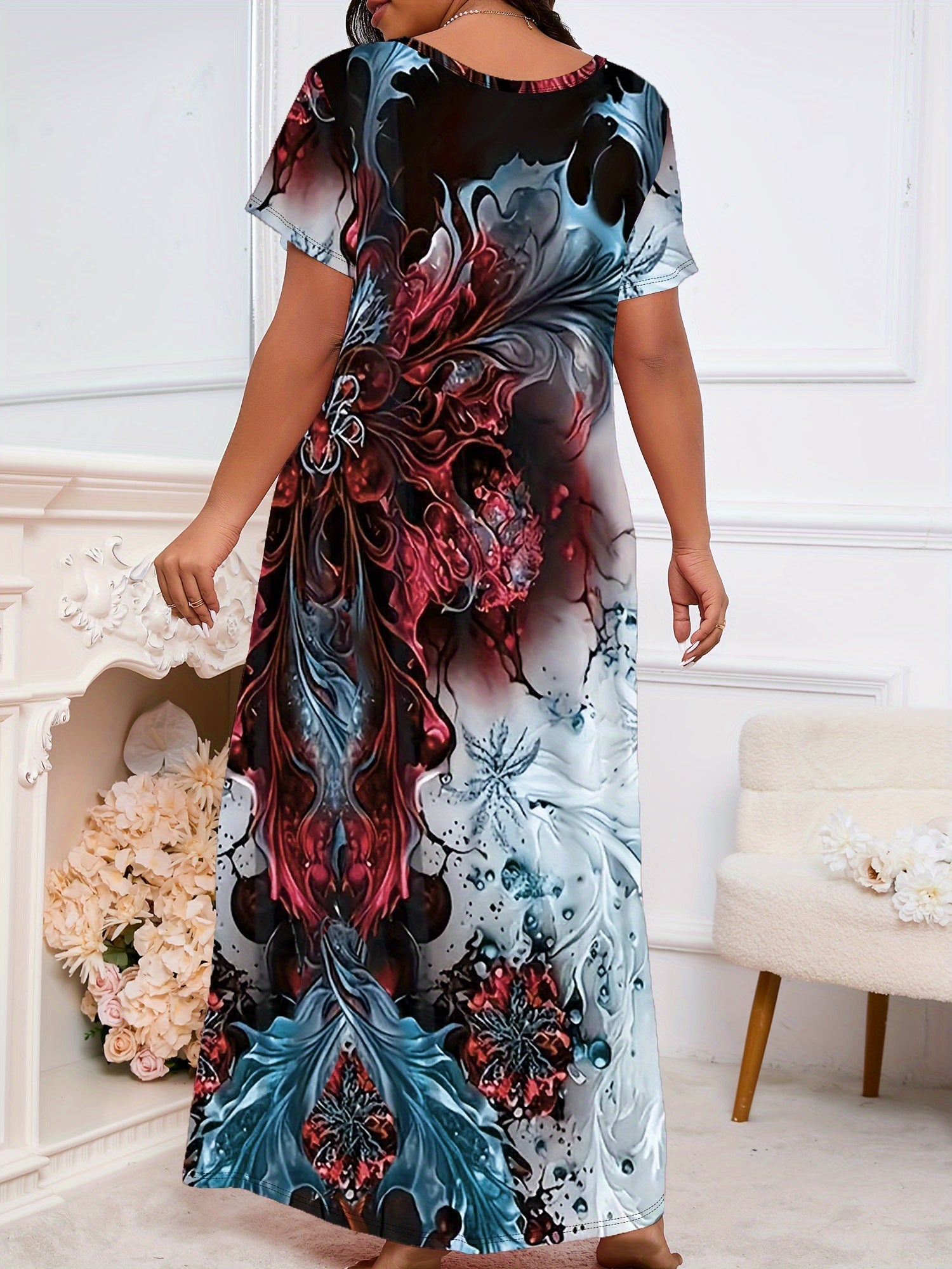 Plus Size Women's Cotton V-Neck Short Sleeve Sleep Dress