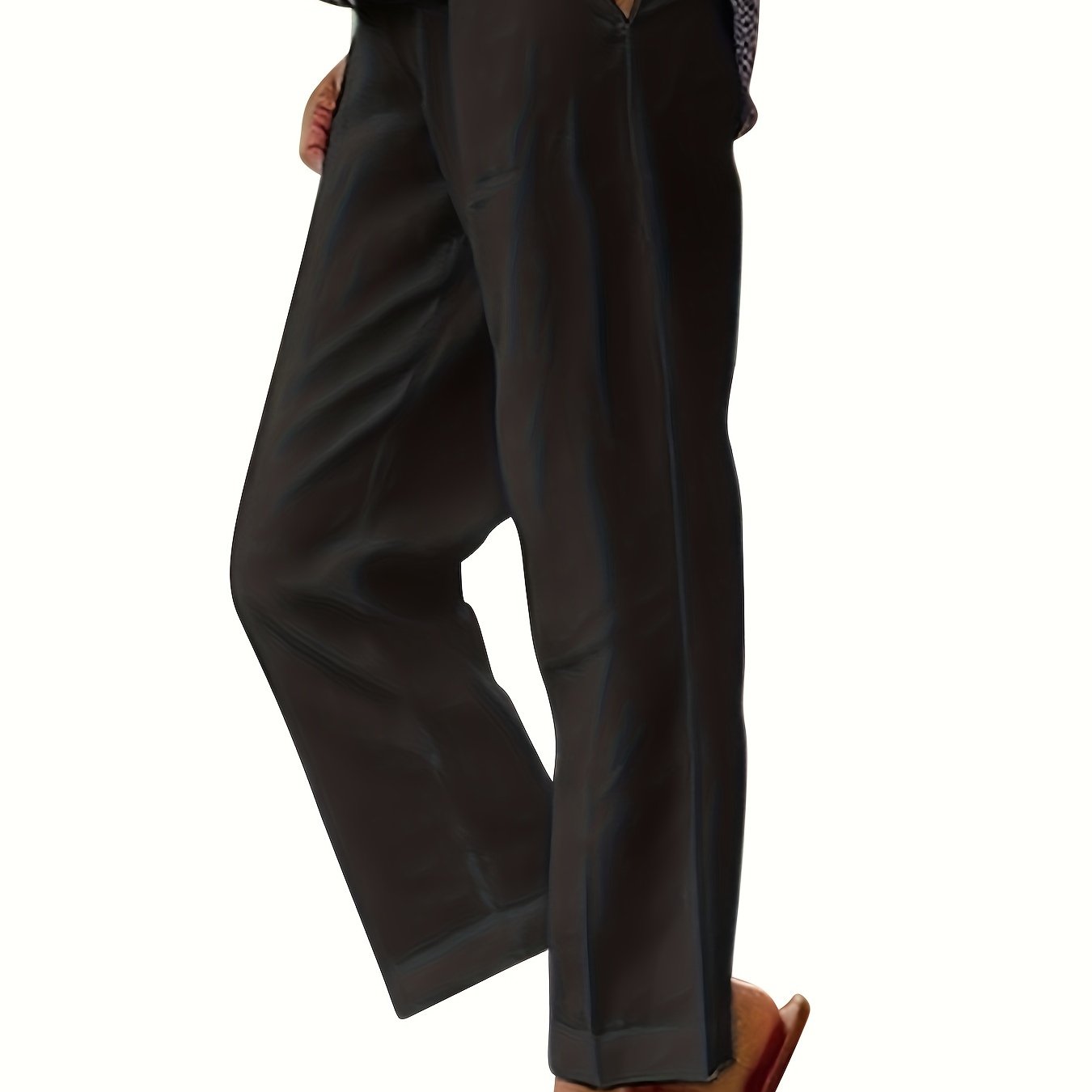 Plus Size Women's Elastic Waist Casual Pants with Pockets Solid Color