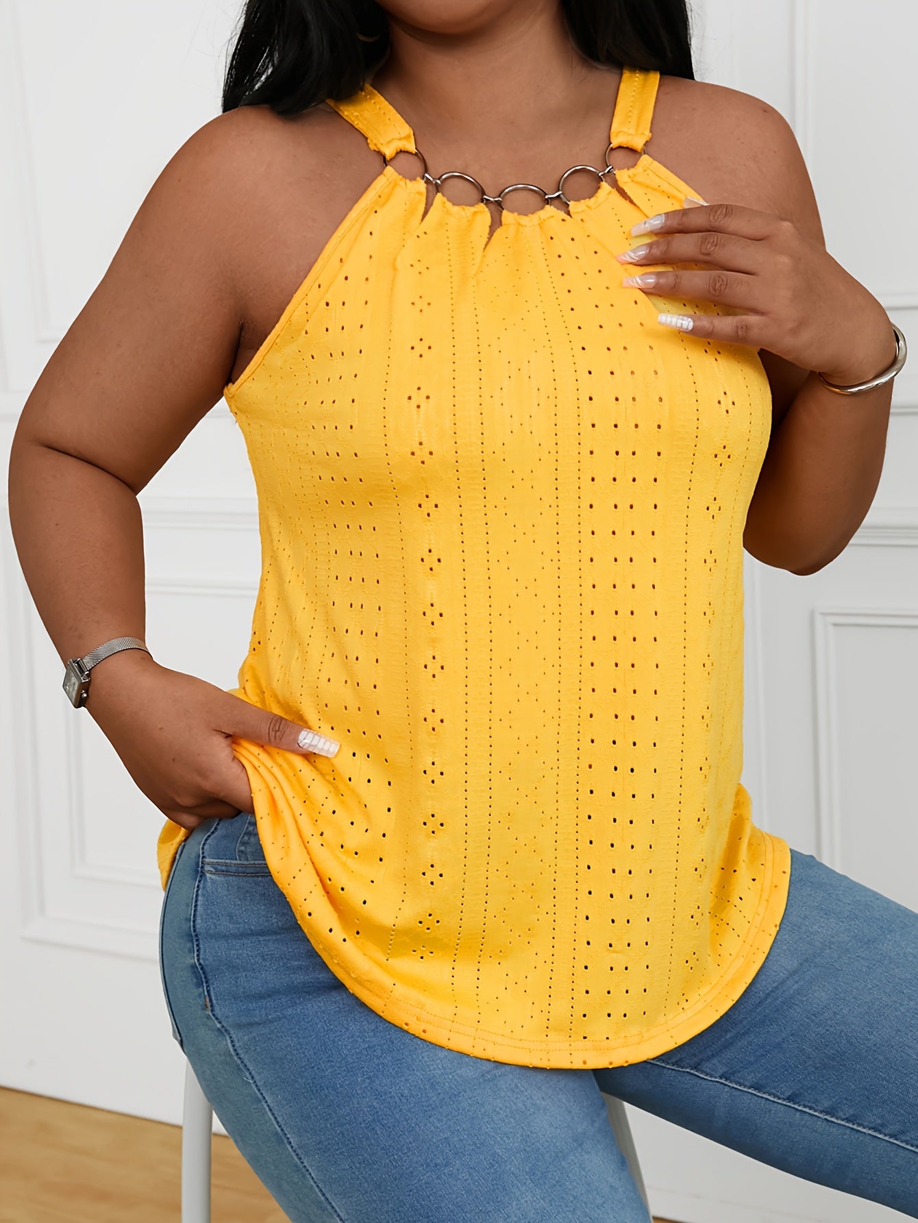 Plus Size Women's Embroidered Eyelet Tank Top Sleeveless Summer Clothing
