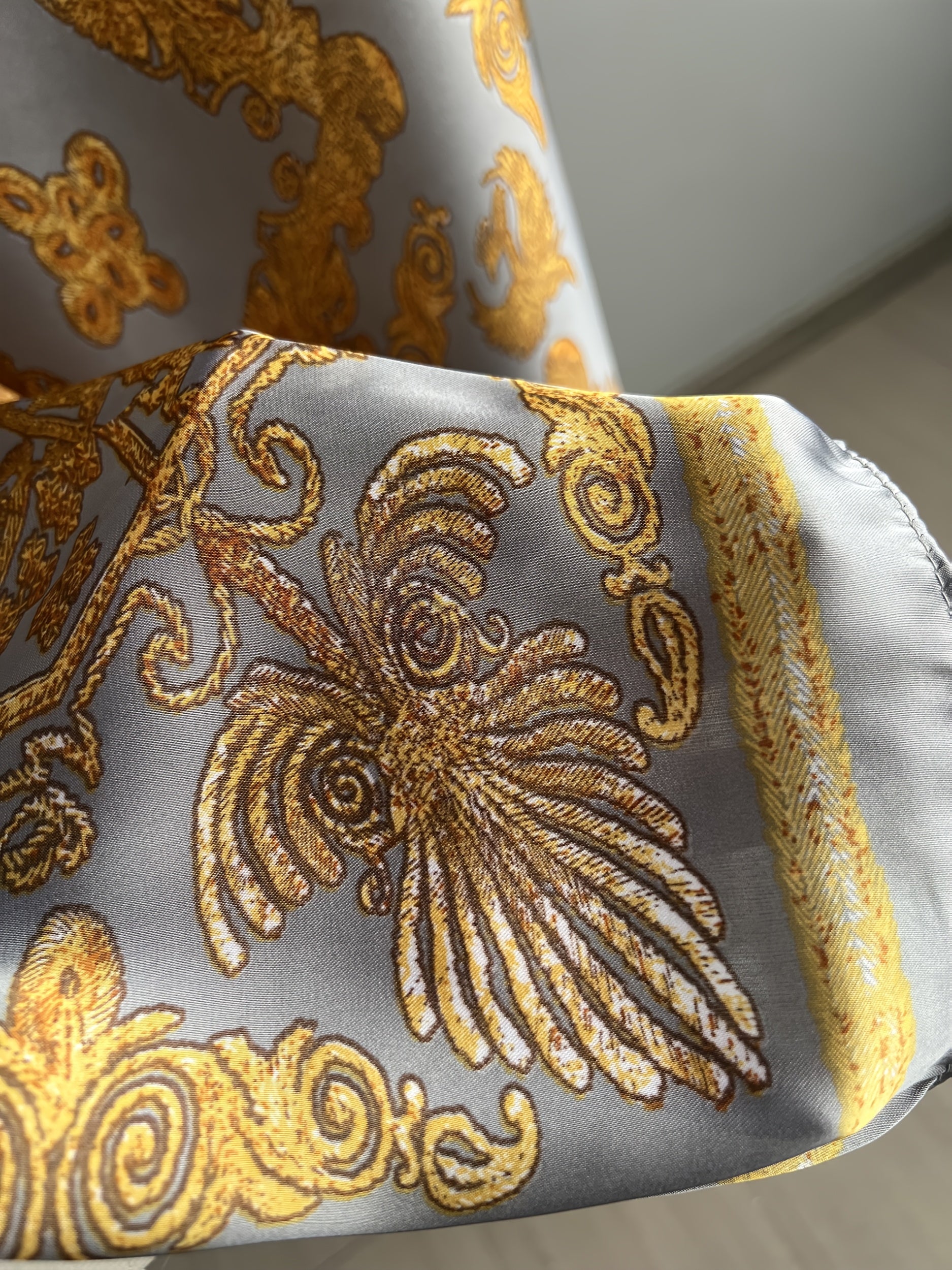 Plus Size Women's Gray Gold Baroque Abaya Dress with Scarf Loose Fit Long Dress
