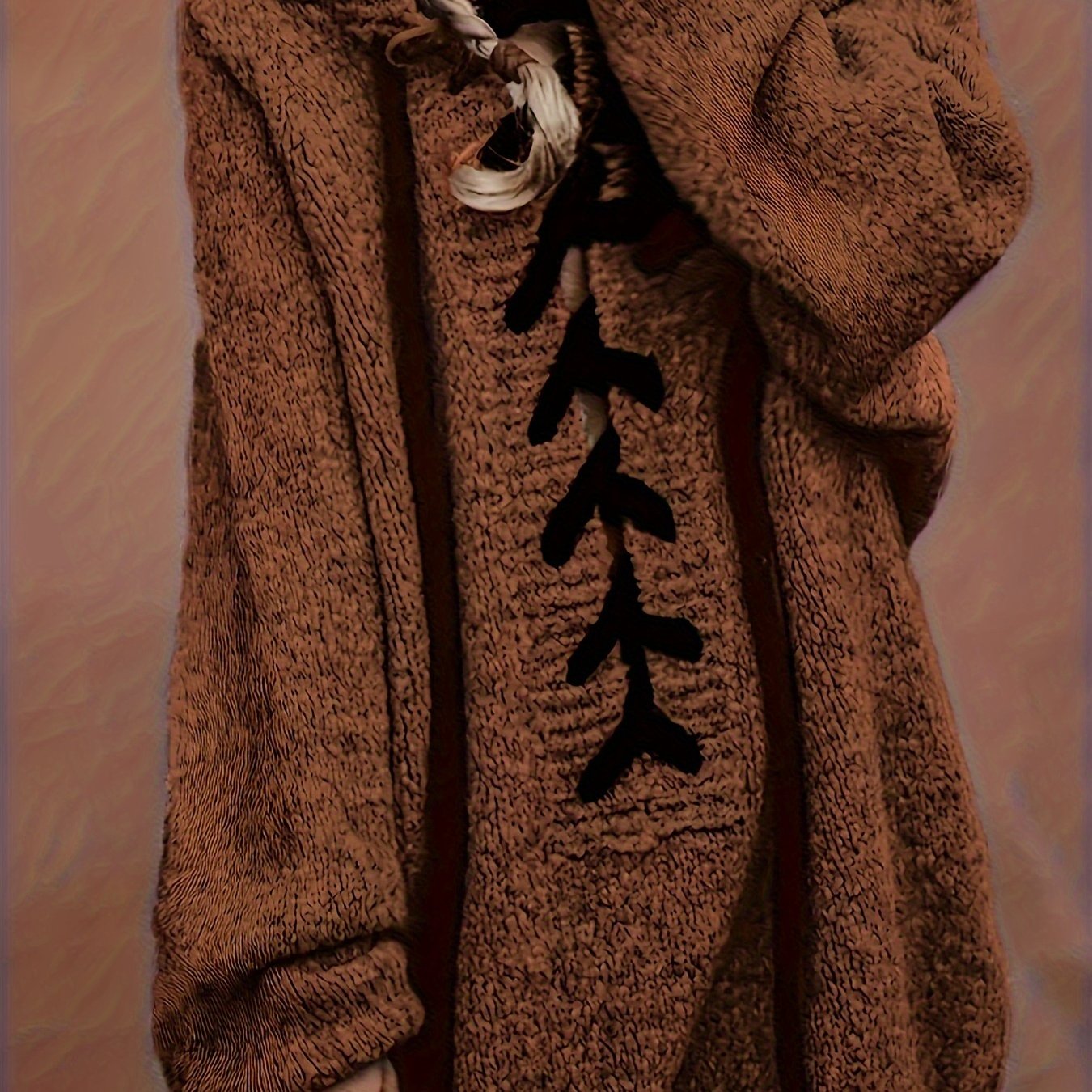 Plus Size Women's Hooded Sweater Pullover with Drawstring Soft Knit Fall Casual