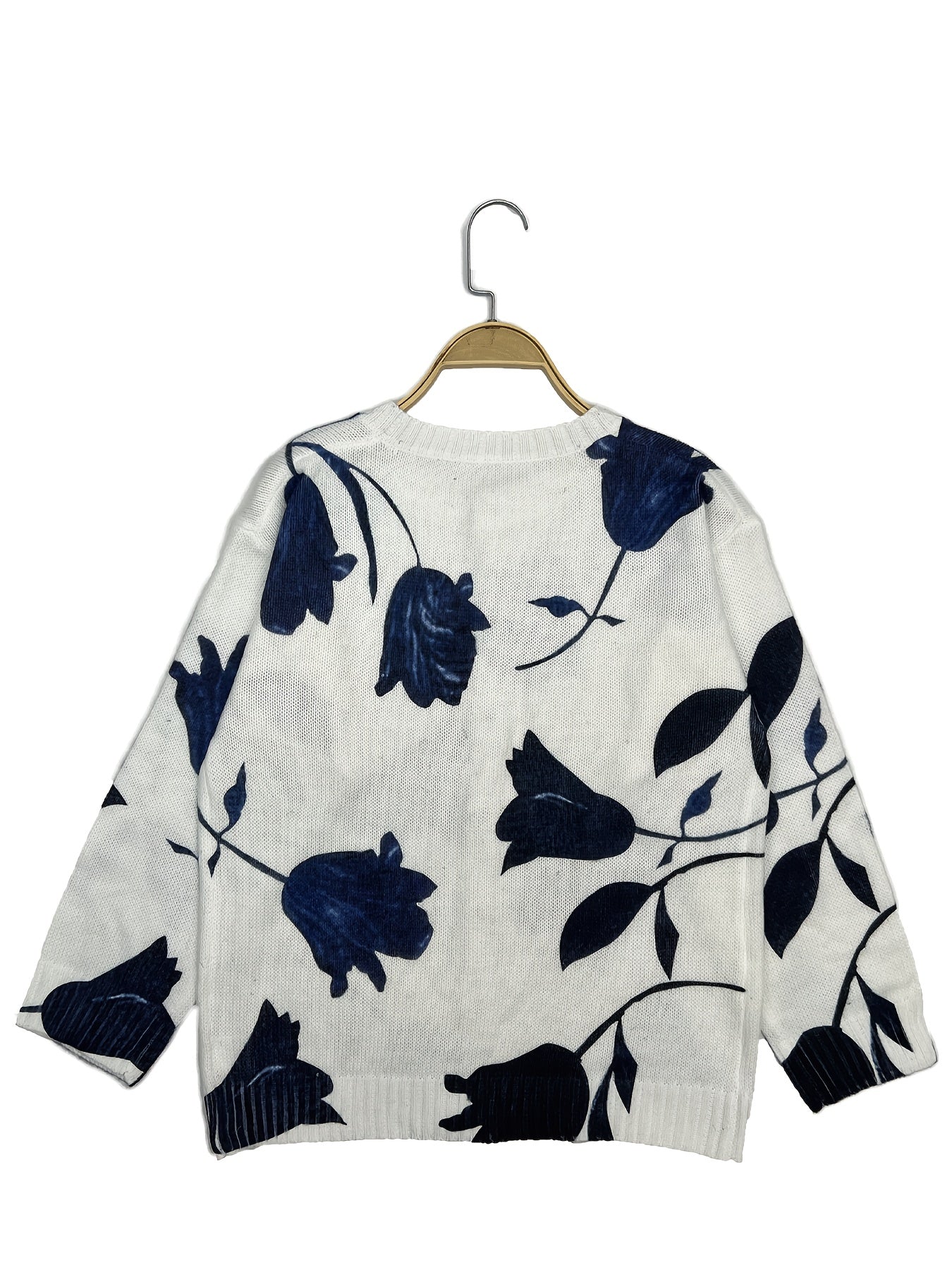 Plus Size Women's Lightweight Floral Print Cardigan Open Front Sweater